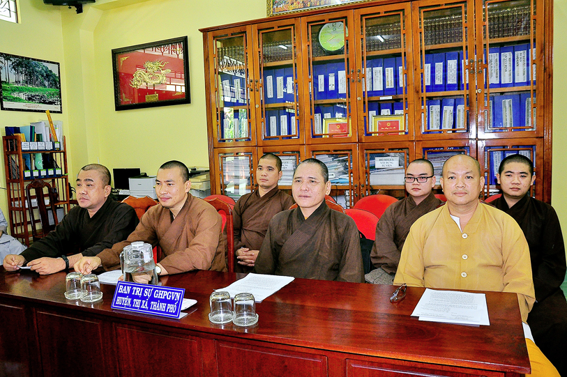 Tham dự và chứng minh buổi họp có: HT. Thích Huệ Hồng- Chứng minh BTS GHPGVN tỉnh Long An; HT. Thích Minh Thiện Uỷ viên HĐTS, Phó Trưởng Ban Hoằng pháp TƯ GHPGVN, Trưởng Ban Trị sự GHPGVN tỉnh Long An; TT. Thích Quảng Tâm – Uỷ viên HĐTS, Phó Thường trực BTS, Trưởng ban từ thiện GHPGVN tỉnh Long An; HT. Thích Thiện Tài – Phó BTS, Trưởng Ban Nghi Lễ GHPGVN tỉnh Long An; cùng chư tôn đức thường trực BTS tỉnh, chư tôn đức thường trực BTS các huyện, thị trực thuộc tỉnh Long An và chư tôn đức ban chức sự của 11 hạ trường đồng về tham dự.