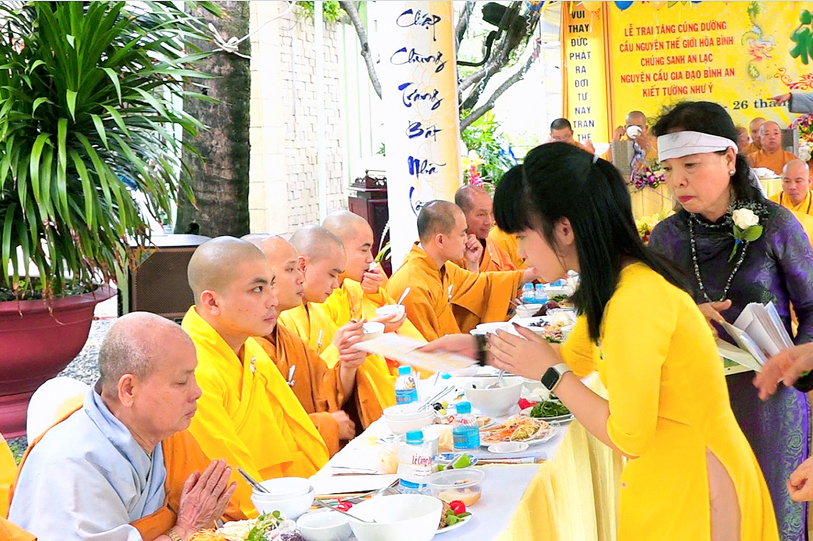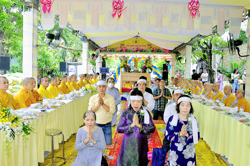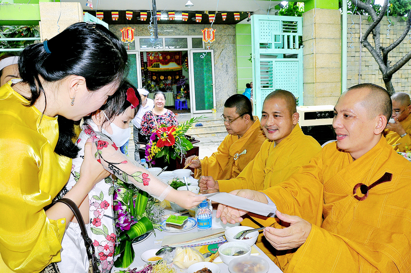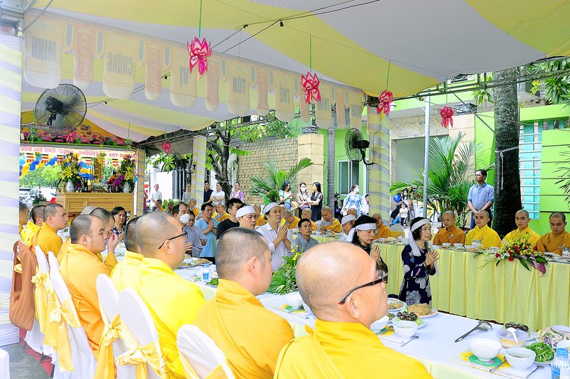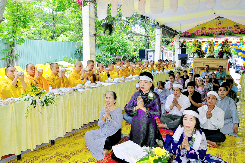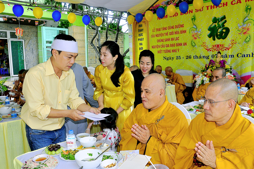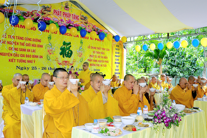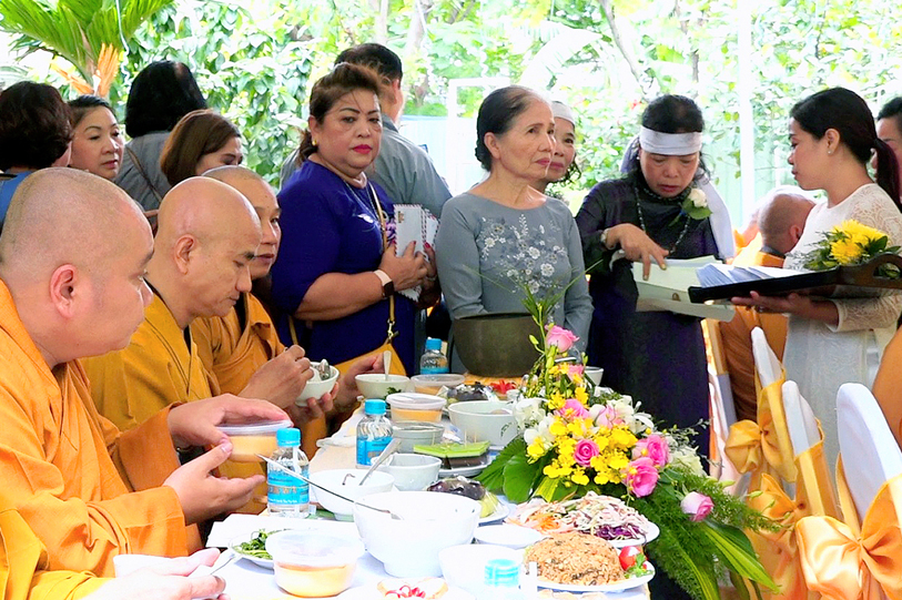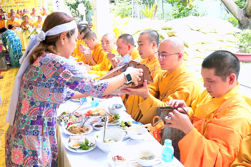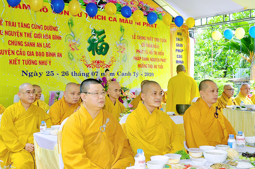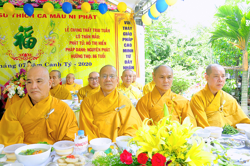 Đến ngày 26/7/năm Canh Tý (ngày 13/9/2020) cũng là ngày chung thất của cụ bà Hồ Thị Hiền pháp danh Nguyên Phát, Phật tử Nguyên Oanh đã thực hành báo hiếu theo lời dạy kinh Vu Lan, phụng thỉnh Tăng già lai lâm chứng giám, thiết lễ trai nghi như kinh dạy để báo hiếu mẫu thân.