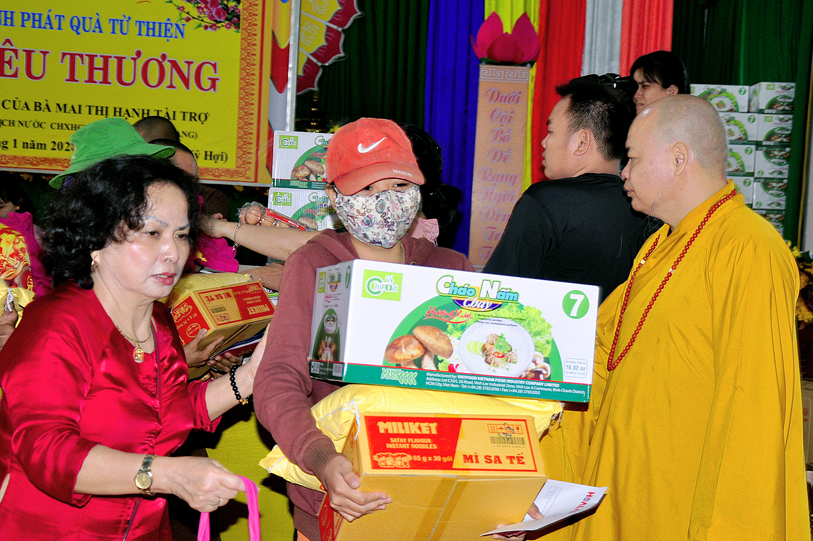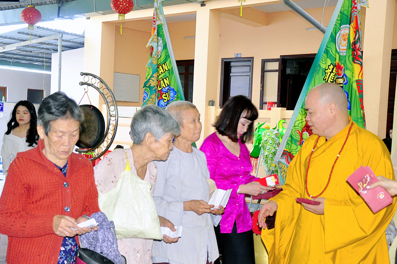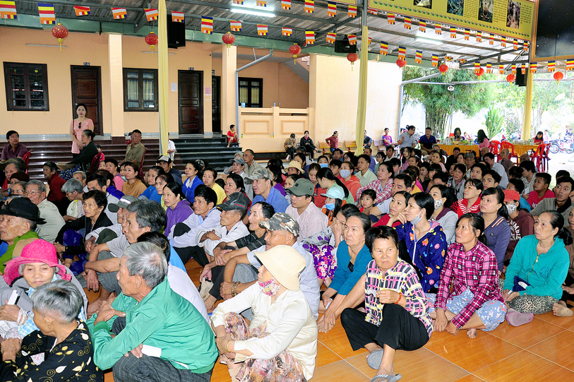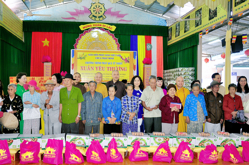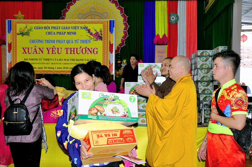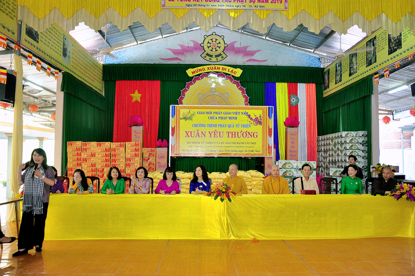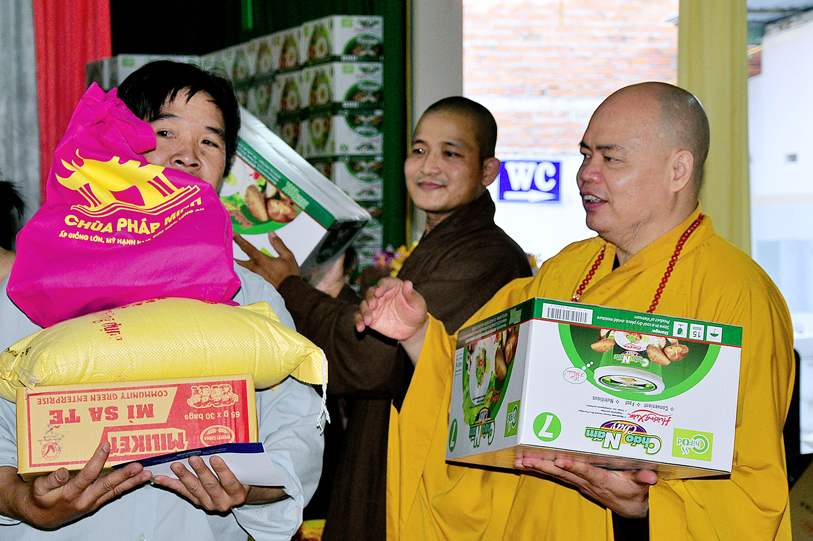 Chứng minh, tham dự buổi phát quà có: Hòa thượng Thích Minh Thiện – Phó Trưởng ban Ban Hoằng pháp Trung ương GHPGVN, Trưởng ban Trị sự GHPGVN tỉnh Long An, Hiệu trưởng Trường Sơ – Trung cấp Phật học Long An; Thượng tọa Thích Thanh Phong – Ủy viên Thường trực, Trưởng ban Kinh tế Tài chánh Trung ương GHPGVN; Đại đức Thích Quảng Lâm: Ủy viên HĐTS, Ủy viên Ban PGQT TƯ, Chủ Nhiệm Lớp Sơ cấp Phật học Long An; Đại đức Thích Lệ Duyên: Chánh Thư ký, Trưởng ban PGQT tỉnh Long An, Phó ban Trị sự GHPGVN liên huyện Đức Hòa Đức Huệ, cùng chư tôn đức ban Chủ nhiệm lớp Sơ cấp Phật học Long An.