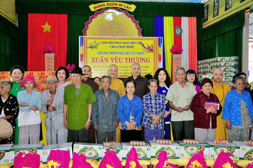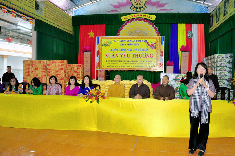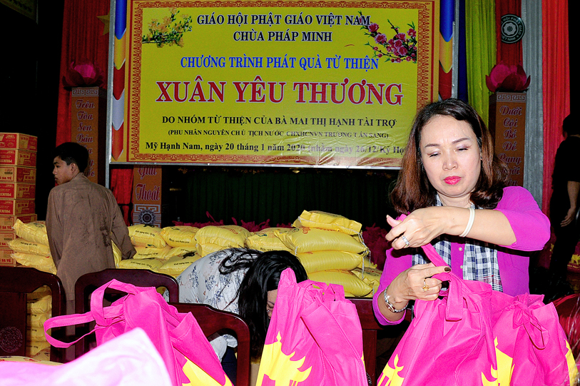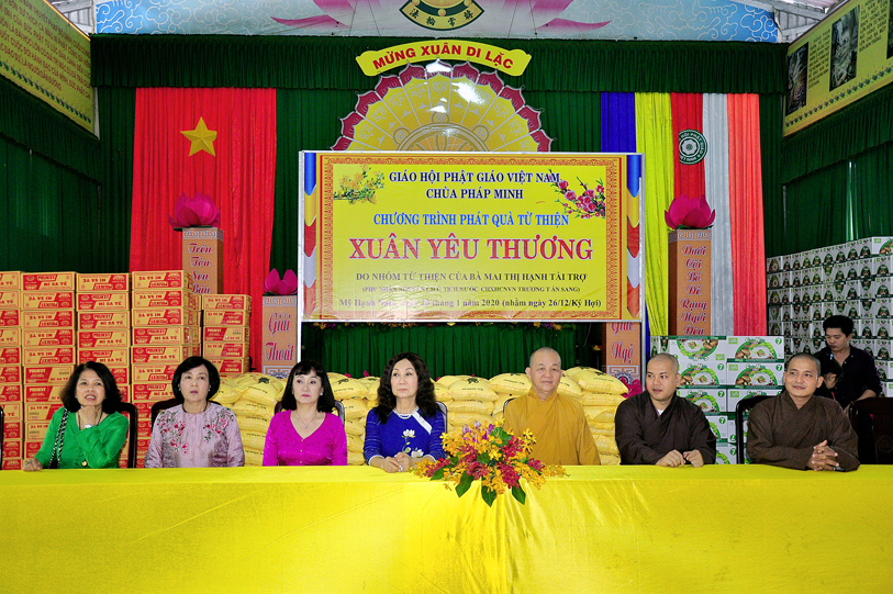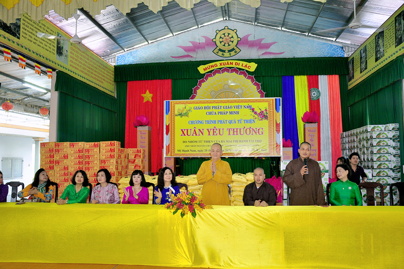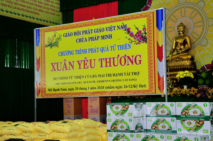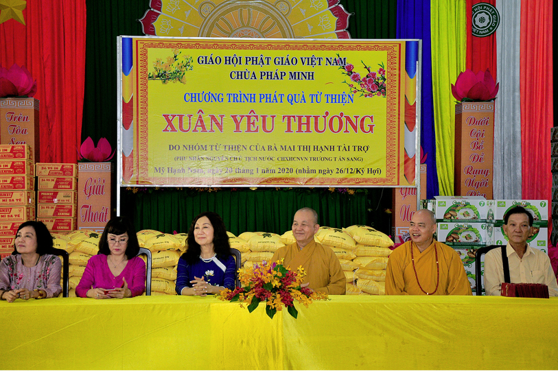 Ngày 20/01/2020, chùa Pháp Minh ( văn phòng Lớp Sơ cấp Phật học Long An), xã Mỹ Hạnh Nam, huyện Đức Hòa đã kết hợp với với đoàn từ thiện của bà Mai Thị Hạnh, phu nhân của Nguyên Chủ tịch nước Trương Tấn Sang đã phát 300 phần quà cho người lớn tuổi, người có hoàn cảnh khó khăn để vui xuân đón tết Canh Tý. Mỗi phần quà trị giá một triệu đồng (650.000 đ tiền mặt, gạo, cháo, đường, nước tương…) do nhóm từ thiện của bà Mai Thị Hạnh tài trợ, với sự hỗ trợ, đóng góp của nhiều công ty, tập đoàn, thân hữu của bà Mai Thị Hạnh.