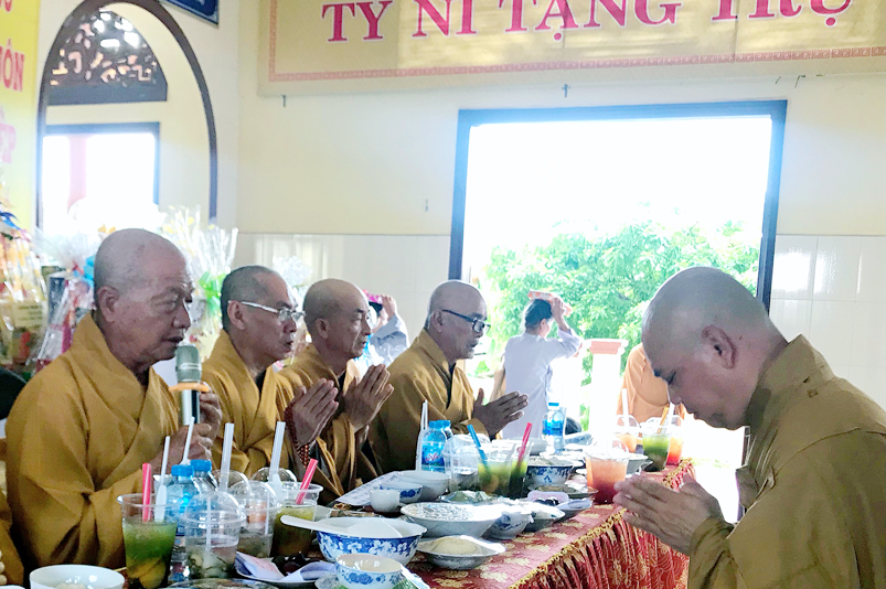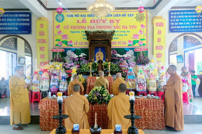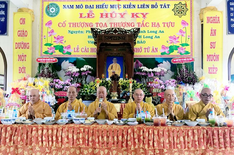 Mở đầu là khoá lễ tụng kinh cầu Quốc thới dân an, tiếp theo là lễ cúng Ngọ cung tiến Giác linh Cố Thượng toạ Thích Tắc Tựu. Hoà thượng Thích Tắc Phi đại diện Tông môn cung tuyên tiểu sử và hành trạng của cố thượng toạ Thích Tắc Tựu, sau cùng lễ cúng dường Trai Tăng của môn nhơn pháp quyến. Buổi lễ diễn ra trong không khí trang nghiêm và đầy hoài niệm về bậc thạch trụ thiền lâm có nhiều đóng góp cho PG Long An.