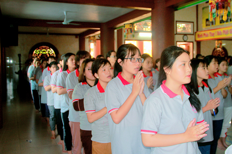 Em nói: “Bốn ngày cùng các bạn sống trong sự thương yêu, che chở của chư Phật, quý Thầy Cô đã làm thay đổi cách nhìn, cách sống của chúng con về cuộc sống bên ngoài, Quả thật có đến chùa, được nghe quý Ngài giảng dạy, chúng con mới cảm nhận được hết tình thương bao la rộng lớn trời biển của ông bà cha mẹ.
