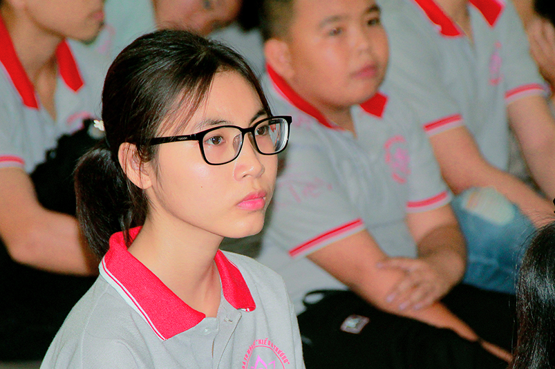 Tiếp theo, Em Đặng Thị cẩm Giang – thay mặt cho hơn 600 tu sinh tham dự khóa tu bày tỏ cảm xúc của mình đến cha mẹ cùng chư Tôn đức Ban Tổ chức khóa tu lời tri ân sâu sắc.