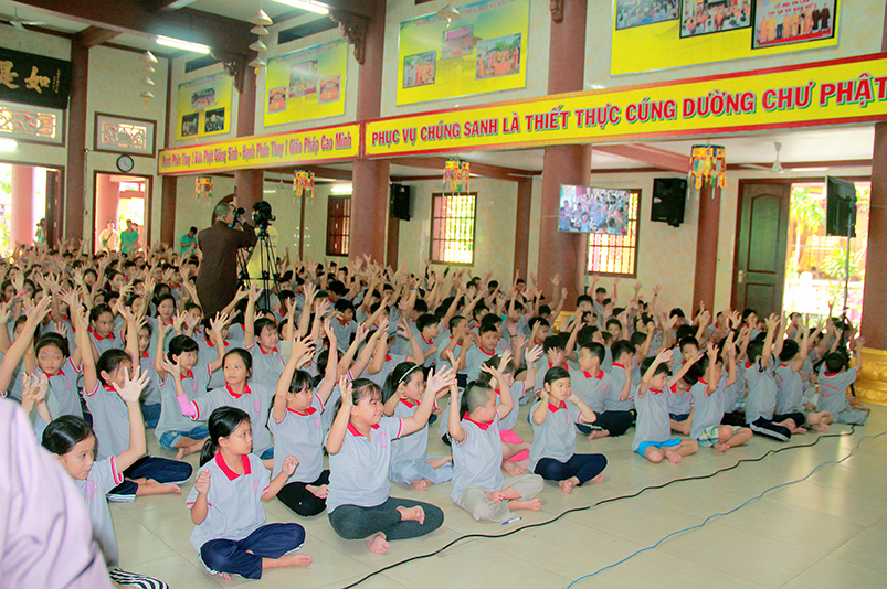 chúng con xin được cảm kính tri ân sâu sắc đến quý Thầy Cô và các anh chị tình nguyện viện đã dành cho chúng con có được sự yên bình tu học trong những ngày qua. Từ việc ăn uống ngủ nghĩ, tắm giặt… đã được chuẩn bị chu đáo. Và khi được trải nghiệm những trò chơi, hiểu hơn về kiến thức Phật pháp, cũng như cách ứng xử với mọi người… có được hành trang cho bản thân, kiến tạo mô hình và định hướng tương lai thật tốt. chúng con hứa sẽ là những người con ngoan trò giỏi để không phụ công ơn cha mẹ và quý Thầy Cô.”
