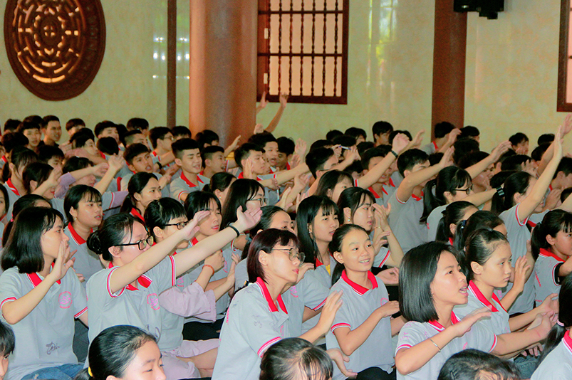 Hoà thượng nhắn nhủ thêm: “Khi rời khỏi cửa chùa thanh tịnh trang nghiêm, các em sẽ lại trở về cuộc sống bộn bề thường nhật, với những nỗi lo học hành, thi cử, gia đình..v..v… Nhưng với những gì học được trong suốt những ngày tu tập tại khóa tu vừa qua, các em được thực tập theo tinh thần Phật giáo “ Hiểu và thương” hãy lấy đó làm phương châm sống. Chắc chắn các em sẽ có được những hành trang để vượt qua mọi nỗi khổ, niềm đau trong cuộc sống, an nhiên tự tại bước vào đời. Mong các em luôn giữ gìn những kí ức đẹp và tâm hồn thánh thiện này trong tâm mình, để là những người tài giỏi và hiền đức tương lai của đất nước”.