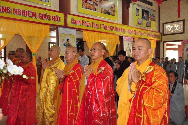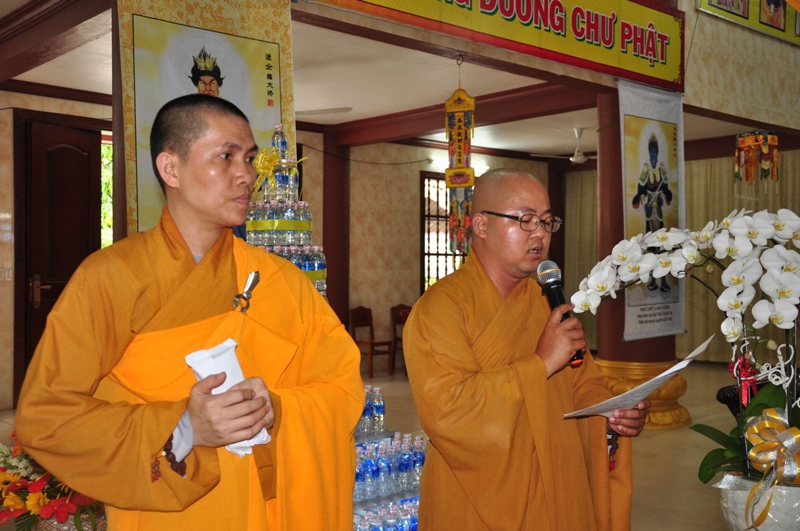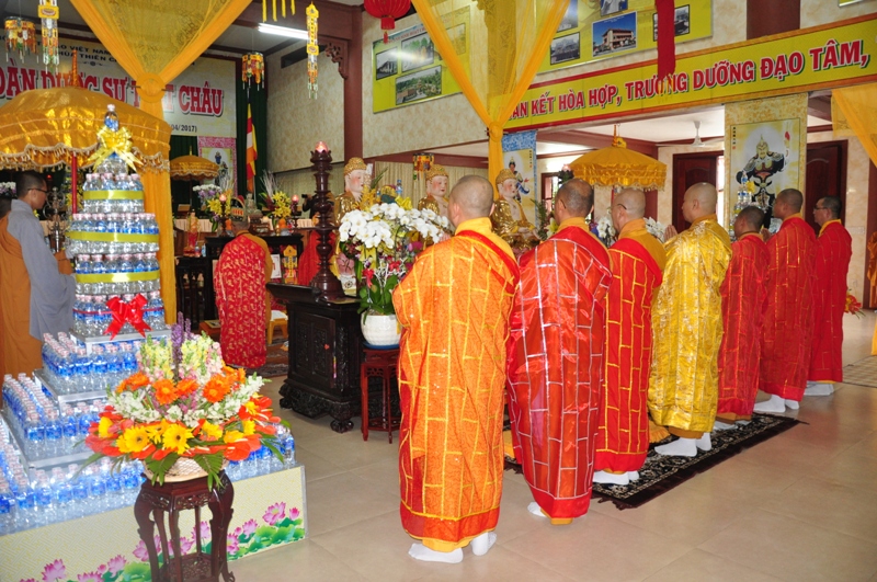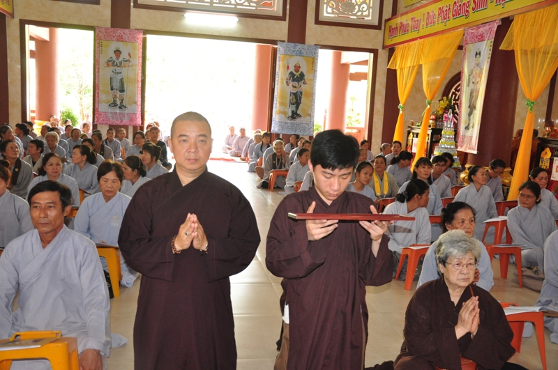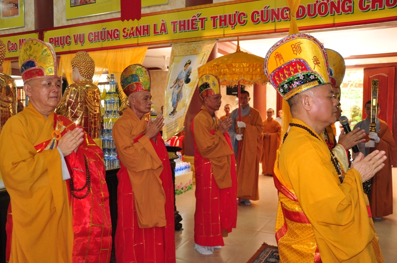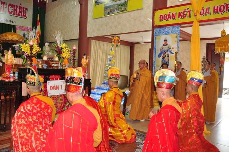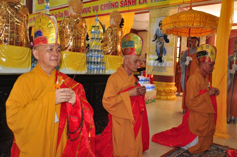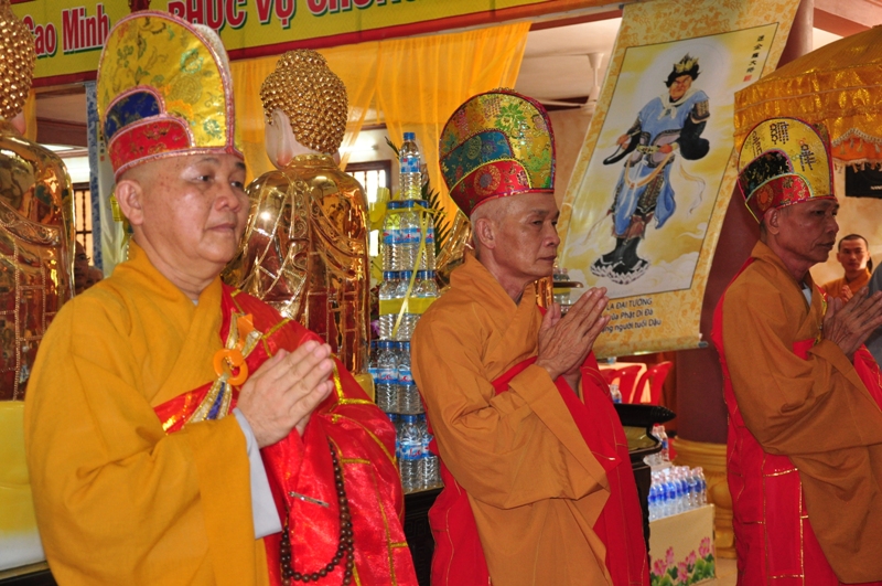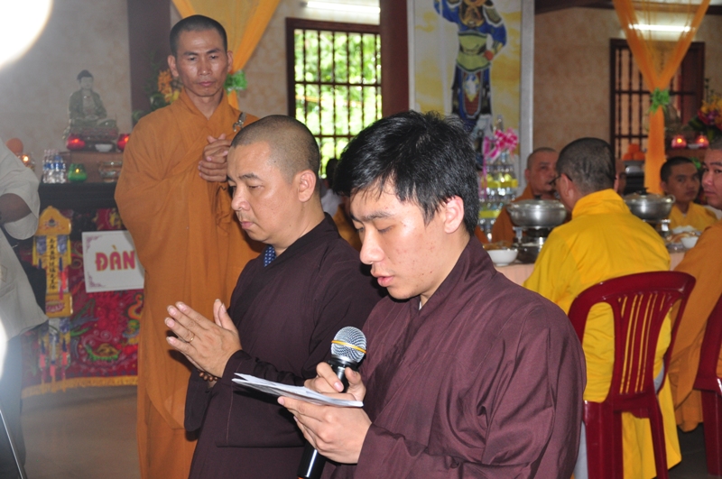 Chứng minh trai đàn gồm có: HT Thích Tấn Đạt – UV TT HĐTS, Phó văn phòng 2 TW GH, Phó ban thường trực ban Hoằng pháp TW; HT Thích Giác Liêm – UV HĐTS, phó văn phòng 2 TW GH, Phó ban Hoằng pháp TW; HT Thích Phước Toàn – UV ban Văn hoá TW, HT Thích Thiện Huệ – Chứng minh BTS GHPGVN tỉnh Long An; HT Thích Minh Thiện – UV HĐTS, Trưởng ban BTS GHPGVN tỉnh Long An; TT Thích Minh Thọ – UV HĐTS, Phó ban thường trực BTS GHPGVN tỉnh Long An; ĐĐ Thích Lệ Trí – UV HĐTS, Chánh thư ký BTS GHPGVN tỉnh Long An cùng chư tôn đức tăng ni trong BTS GHPGVN tỉnh Long An; trụ trì các tự viện và quý tăng sinh trường TCPHLA.