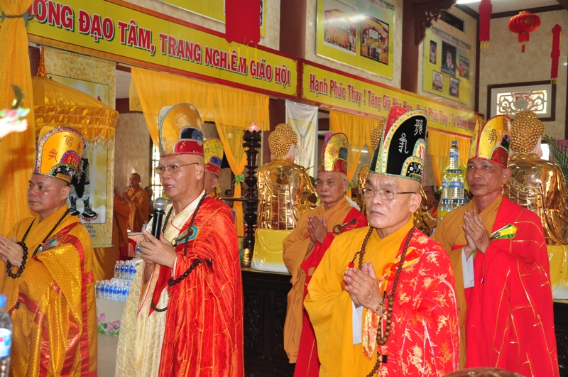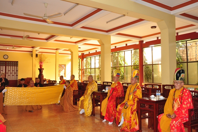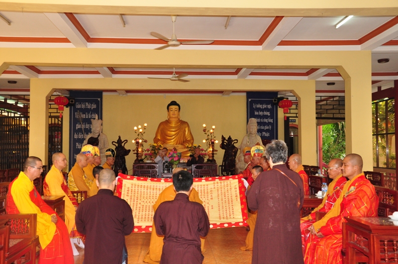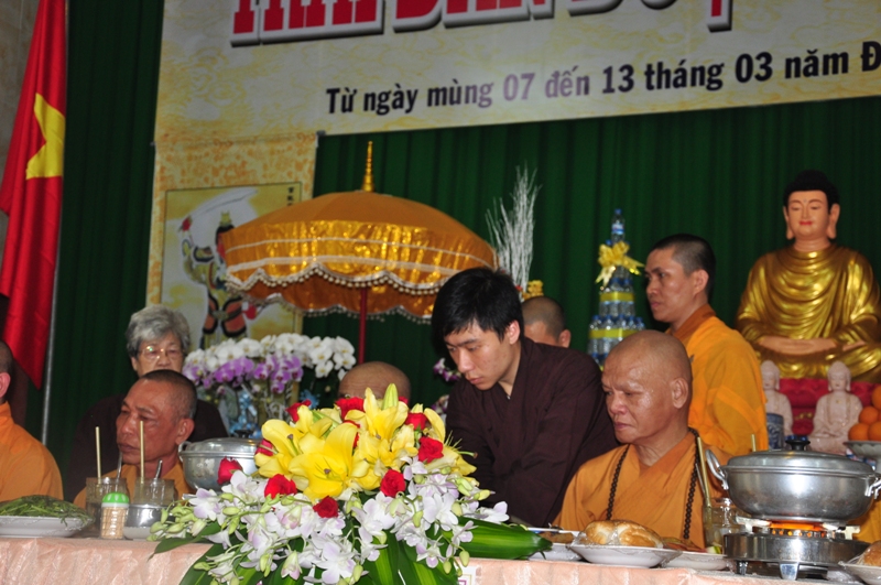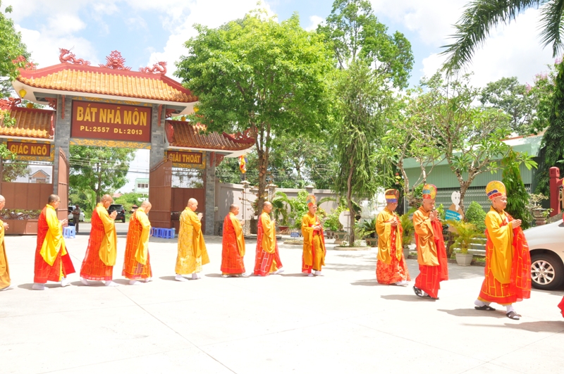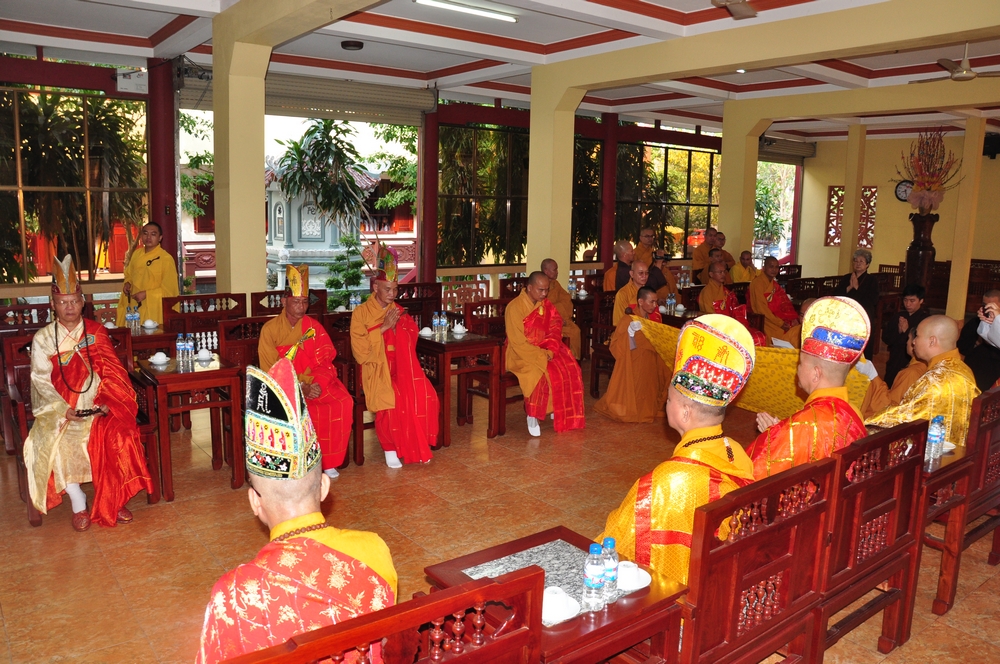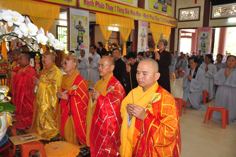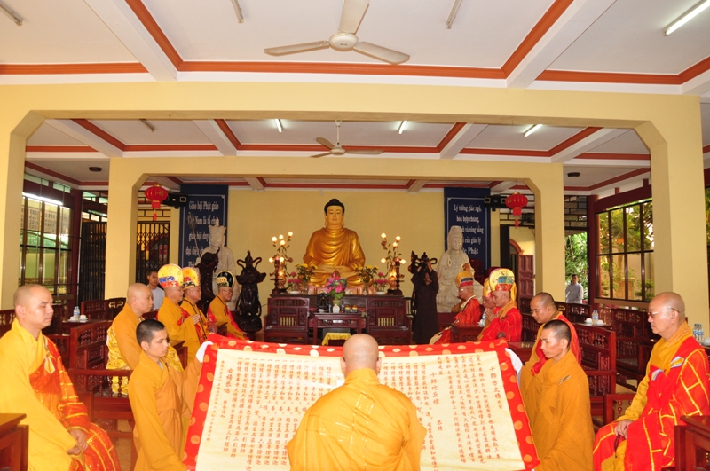 Chứng minh trai đàn gồm có: HT Thích Tấn Đạt – UV TT HĐTS, Phó văn phòng 2 TW GH, Phó ban thường trực ban Hoằng pháp TW; HT Thích Giác Liêm – UV HĐTS, phó văn phòng 2 TW GH, Phó ban Hoằng pháp TW; HT Thích Phước Toàn – UV ban Văn hoá TW, HT Thích Thiện Huệ – Chứng minh BTS GHPGVN tỉnh Long An; HT Thích Minh Thiện – UV HĐTS, Trưởng ban BTS GHPGVN tỉnh Long An; TT Thích Minh Thọ – UV HĐTS, Phó ban thường trực BTS GHPGVN tỉnh Long An; ĐĐ Thích Lệ Trí – UV HĐTS, Chánh thư ký BTS GHPGVN tỉnh Long An cùng chư tôn đức tăng ni trong BTS GHPGVN tỉnh Long An; trụ trì các tự viện và quý tăng sinh trường TCPHLA.