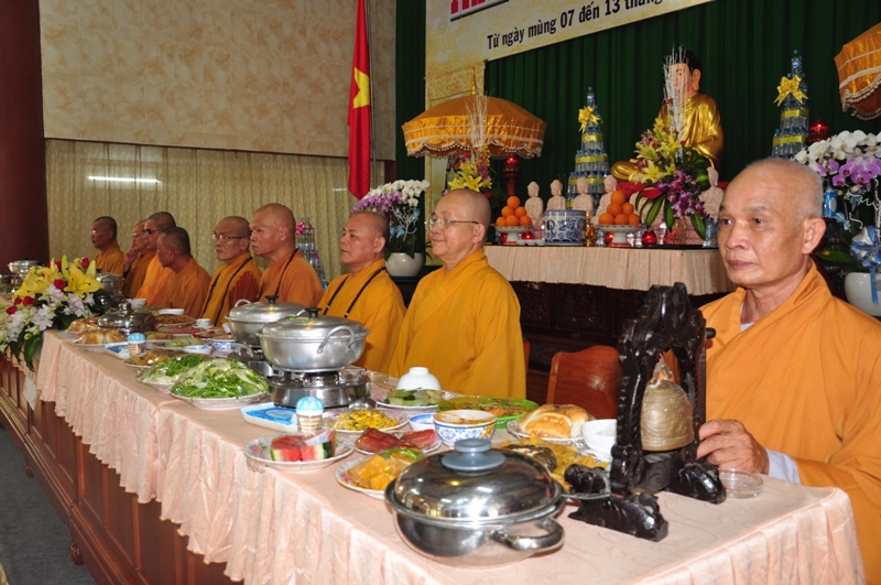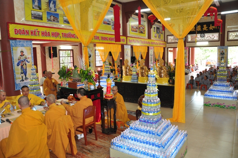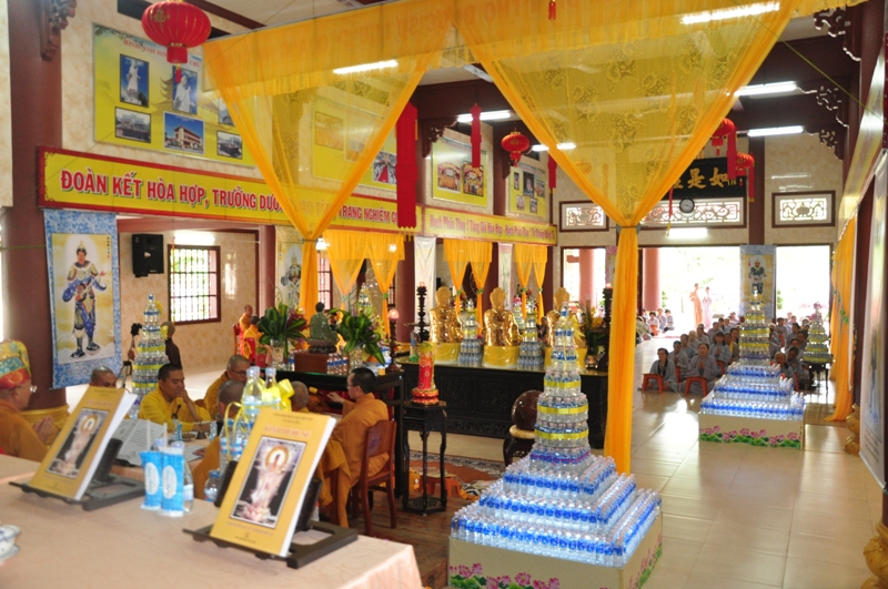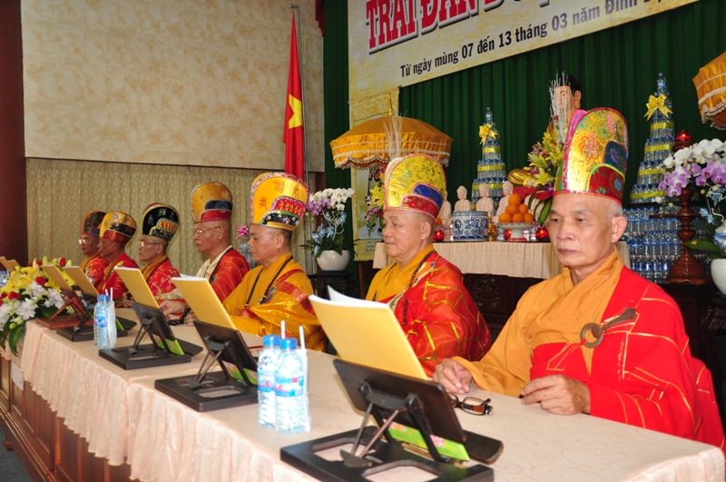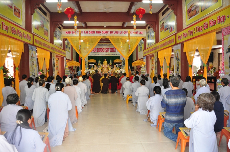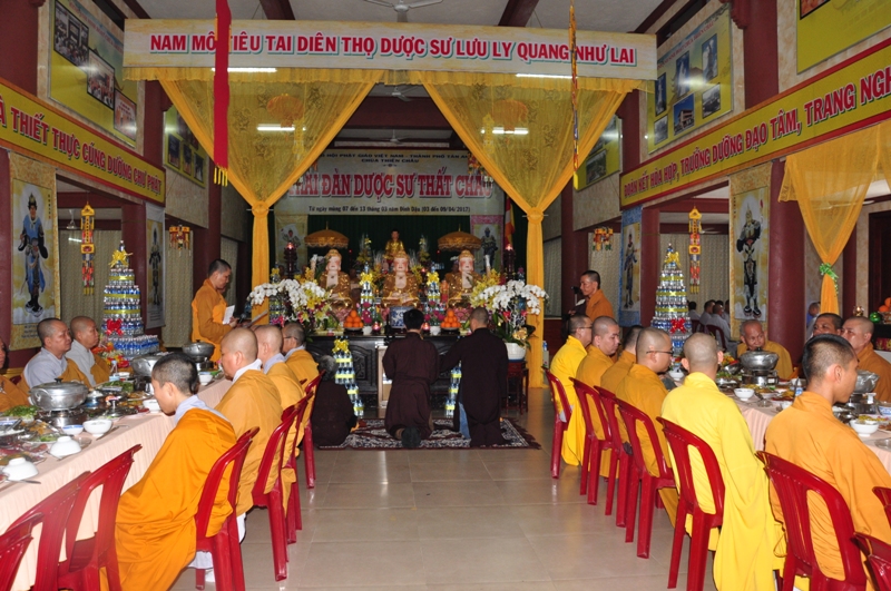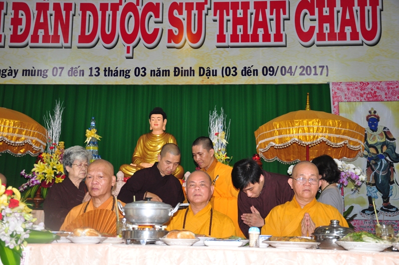 Buổi lễ được diễn ra trang nghiêm trong các nghi thức tâm linh cầu nguyện với sám chủ là HT Thích Phước Toàn. Trong trai đàn, chư tôn hoà thượng chứng minh và thất vị đàn chủ Dược sư thất đàn đăng đàn trang nghiêm cùng với hội chúng nhất tâm cầu nguyện.