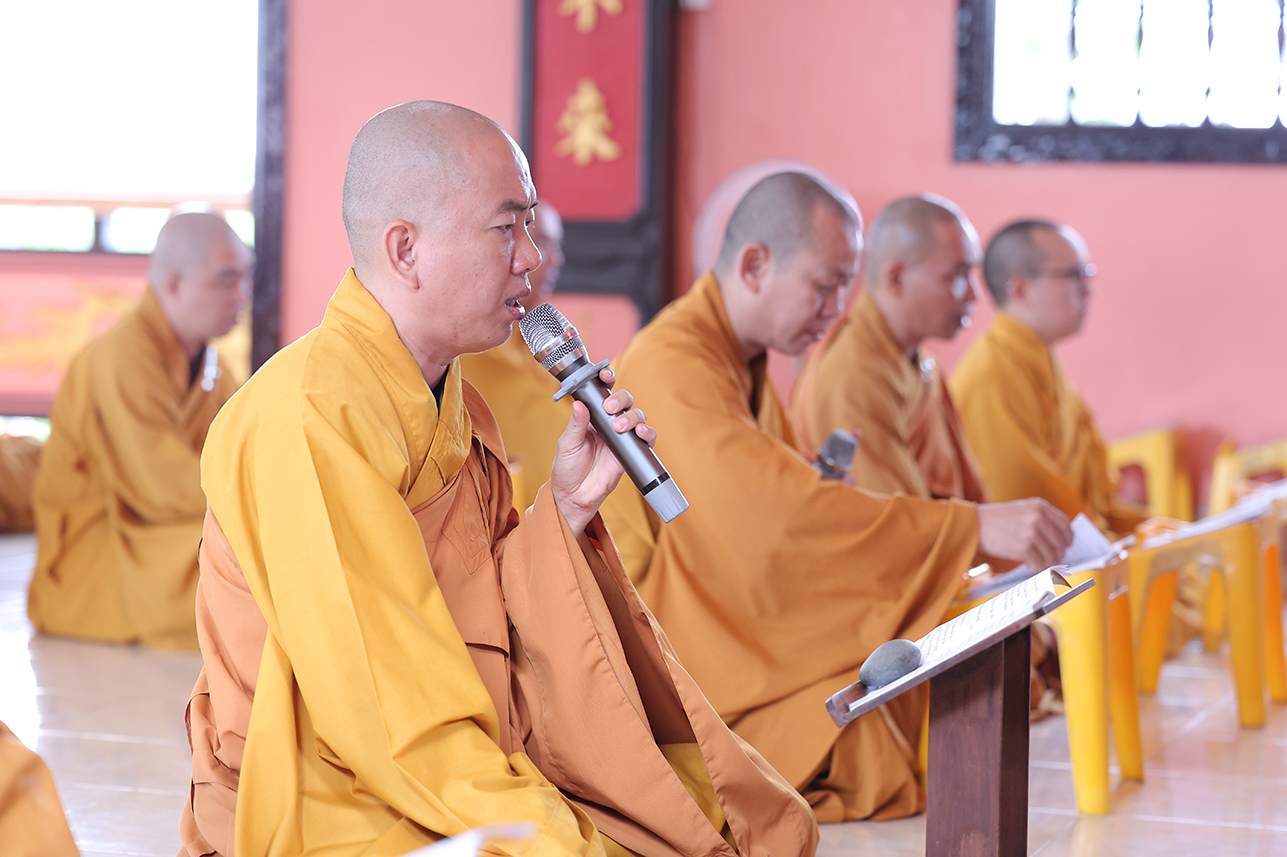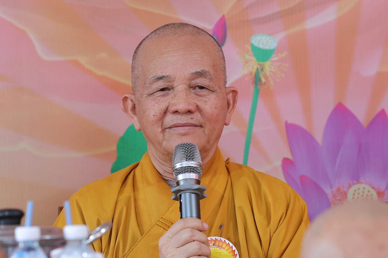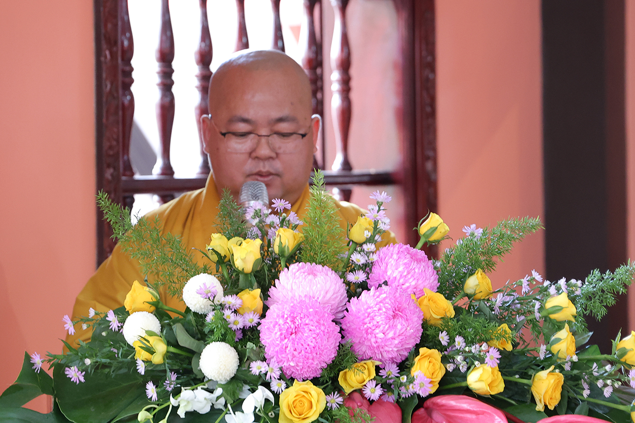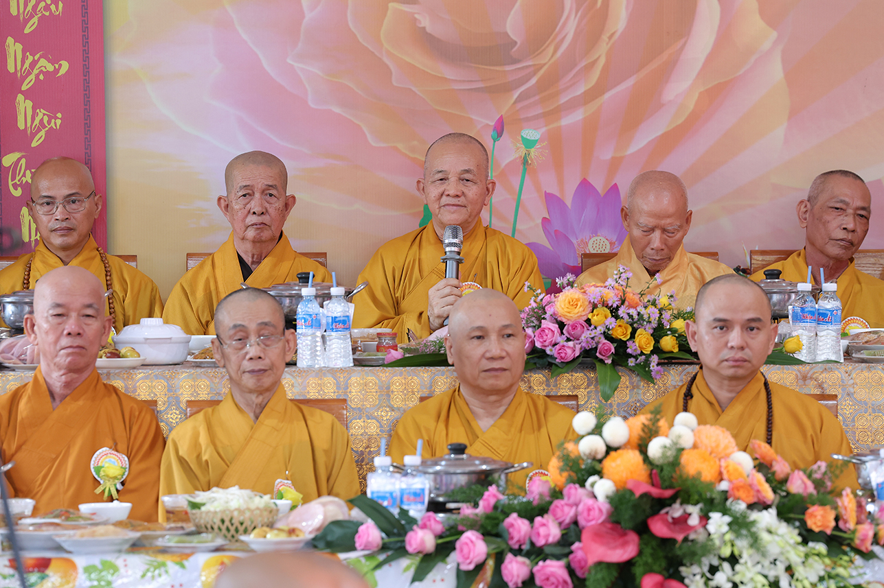 HT. Thích Minh Thiện – Chứng minh, cố vấn BTS GHPGVN tỉnh Tây Ninh ban lời đạo từ, tán thán tâm hiếu, hạnh hiếu của Phật tử chùa Thiên Khánh đã thể hiện qua lời văn tác bạch cúng dường. Hòa thượng nhấn mạnh Đại lễ Vu Lan Báo Hiếu là dịp nhắc nhở người con Phật dù là xuất gia hay tại gia hãy lấy chữ Hiếu, tôn trọng và báo đáp nghĩa ơn là nền tảng của đạo làm người, cũng là cội gốc của mọi hạnh lành trong Phật pháp. Chính vì vậy mà Đại lễ Vu Lan không chỉ tồn tại trong truyền thống đạo Phật mà con đi vào tín ngưỡng dân tộc Việt Nam. Hòa thượng sách tấn đại chúng tinh tấn tu tập, phước trí trang nghiêm để hòa chung vào ngày tôn giáo văn hóa thiêng liêng, biết phụng dưỡng song thân, phát huy trí tuệ của người học Phật để xây dựng đời sống an lạc cho tự thân, mang lại hạnh phúc cho gia đình, góp phần làm cho xã hội ngày càng thịnh trị, quốc gia hưng thịnh.