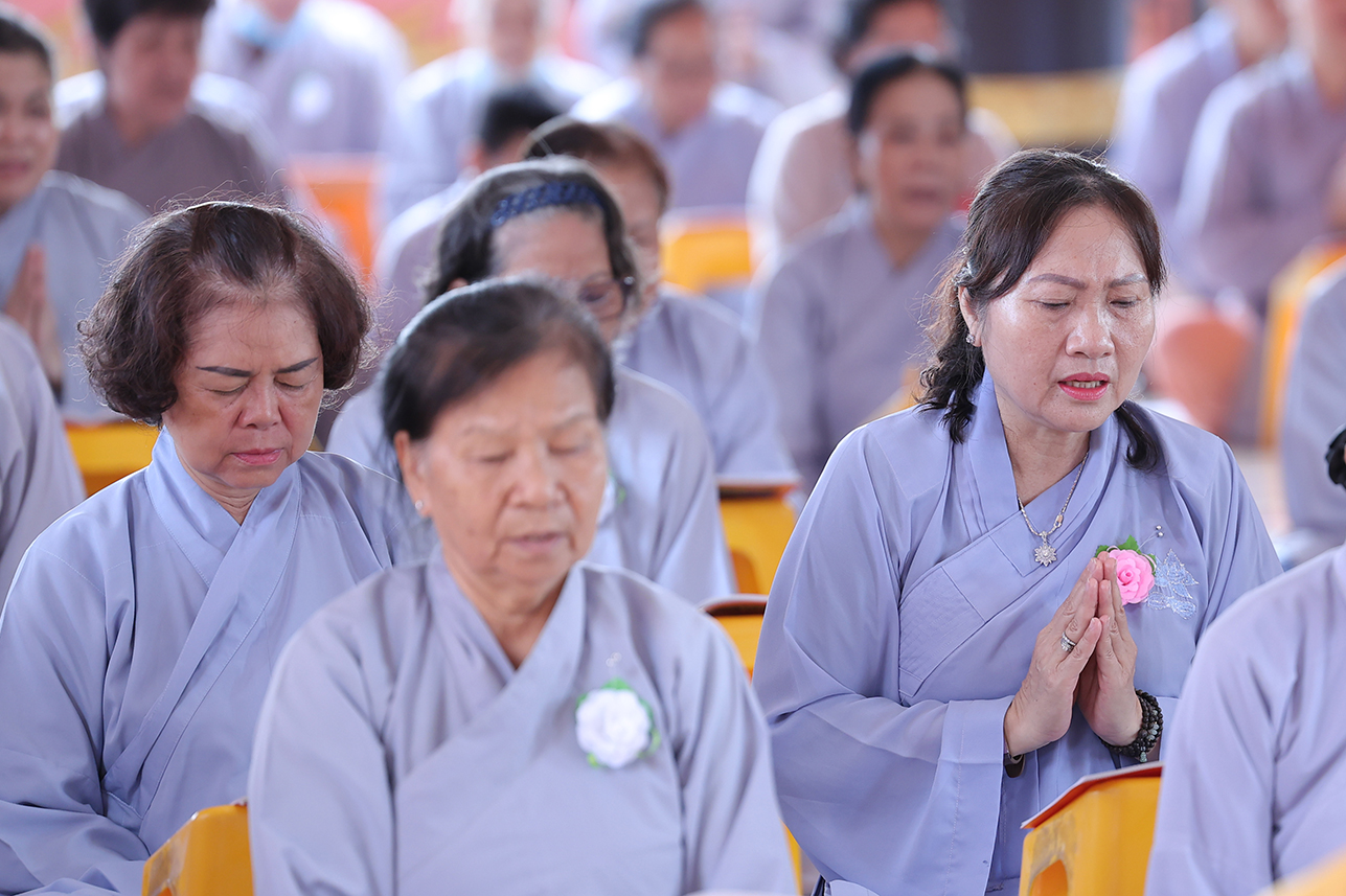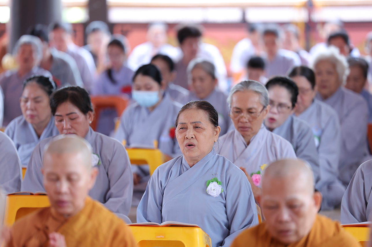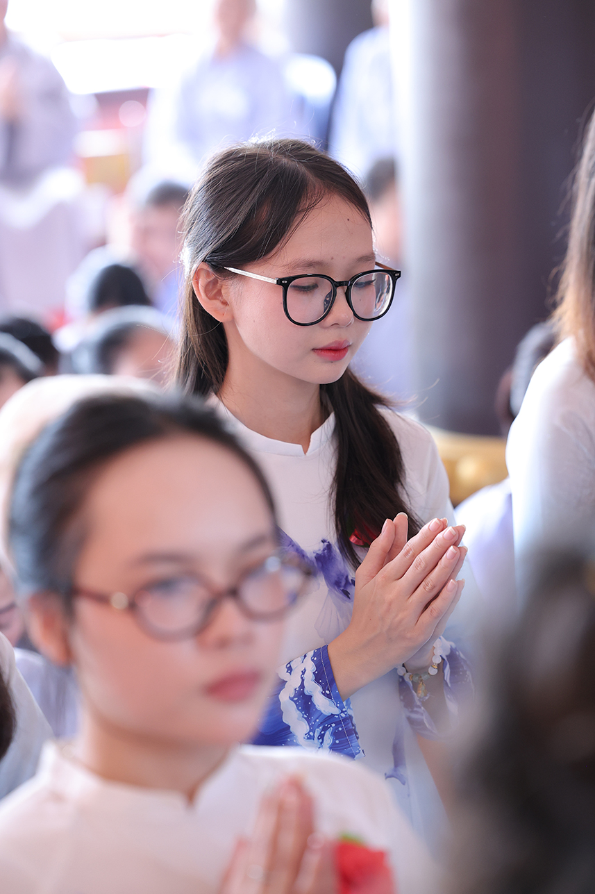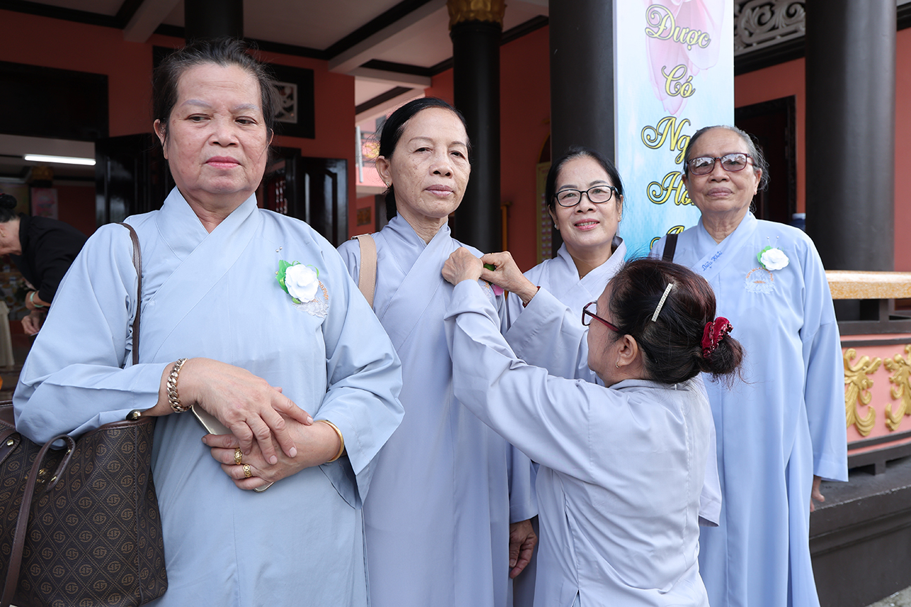 Tại buổi lễ, đại chúng đã lắng lòng tri ân với nghi thức Cài hoa hồng tưởng nhớ Tứ Ân. Những đóa hoa hồng được cài lên ngực áo như một biểu tượng nhắc nhở mỗi người con về công ơn sinh thành dưỡng dục của cha mẹ, cũng như lòng tri ân sâu sắc đối với Tam bảo, đối với quốc gia dân tộc và ân thí chủ đàn na.