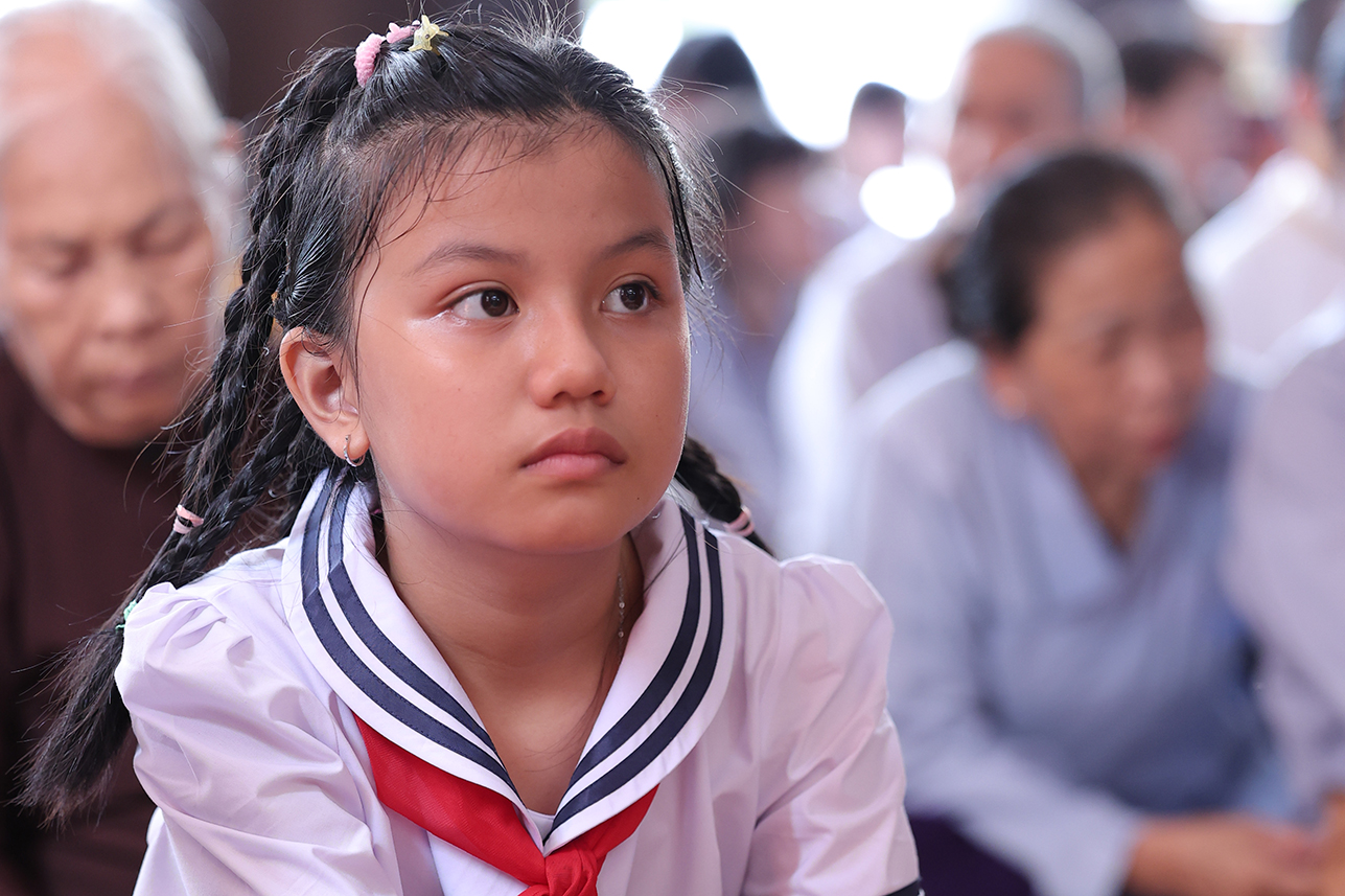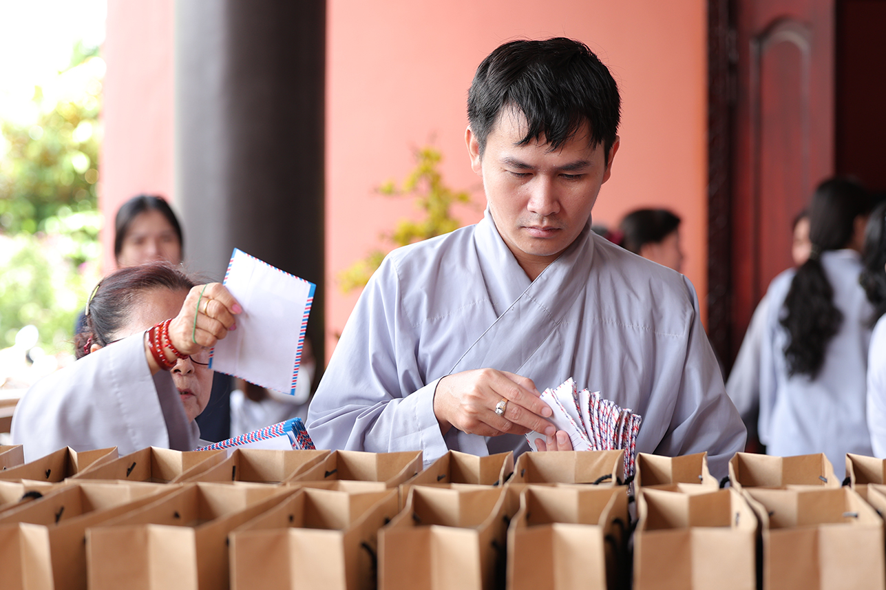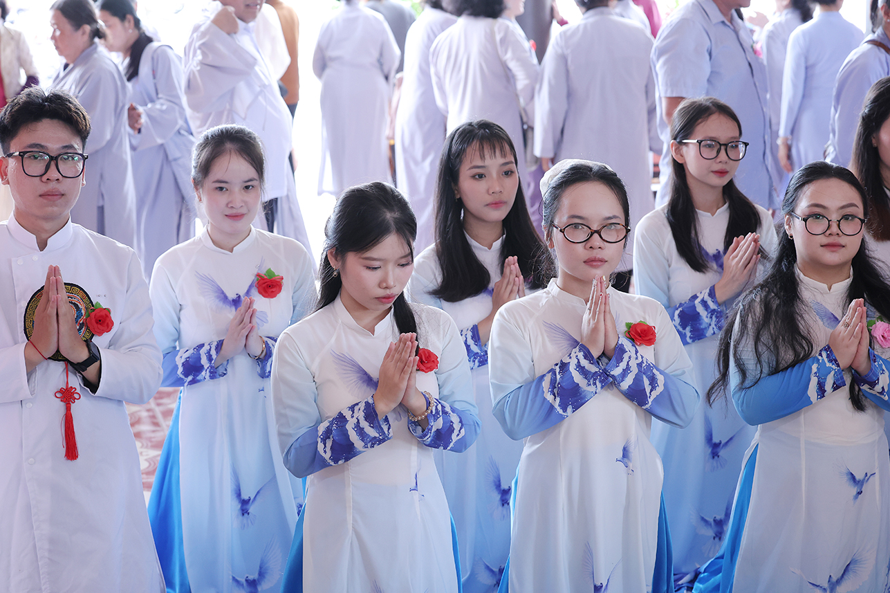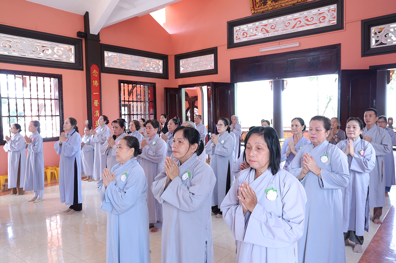 Tại buổi lễ, đại chúng đã lắng lòng tri ân với nghi thức Cài hoa hồng tưởng nhớ Tứ Ân. Những đóa hoa hồng được cài lên ngực áo như một biểu tượng nhắc nhở mỗi người con về công ơn sinh thành dưỡng dục của cha mẹ, cũng như lòng tri ân sâu sắc đối với Tam bảo, đối với quốc gia dân tộc và ân thí chủ đàn na.