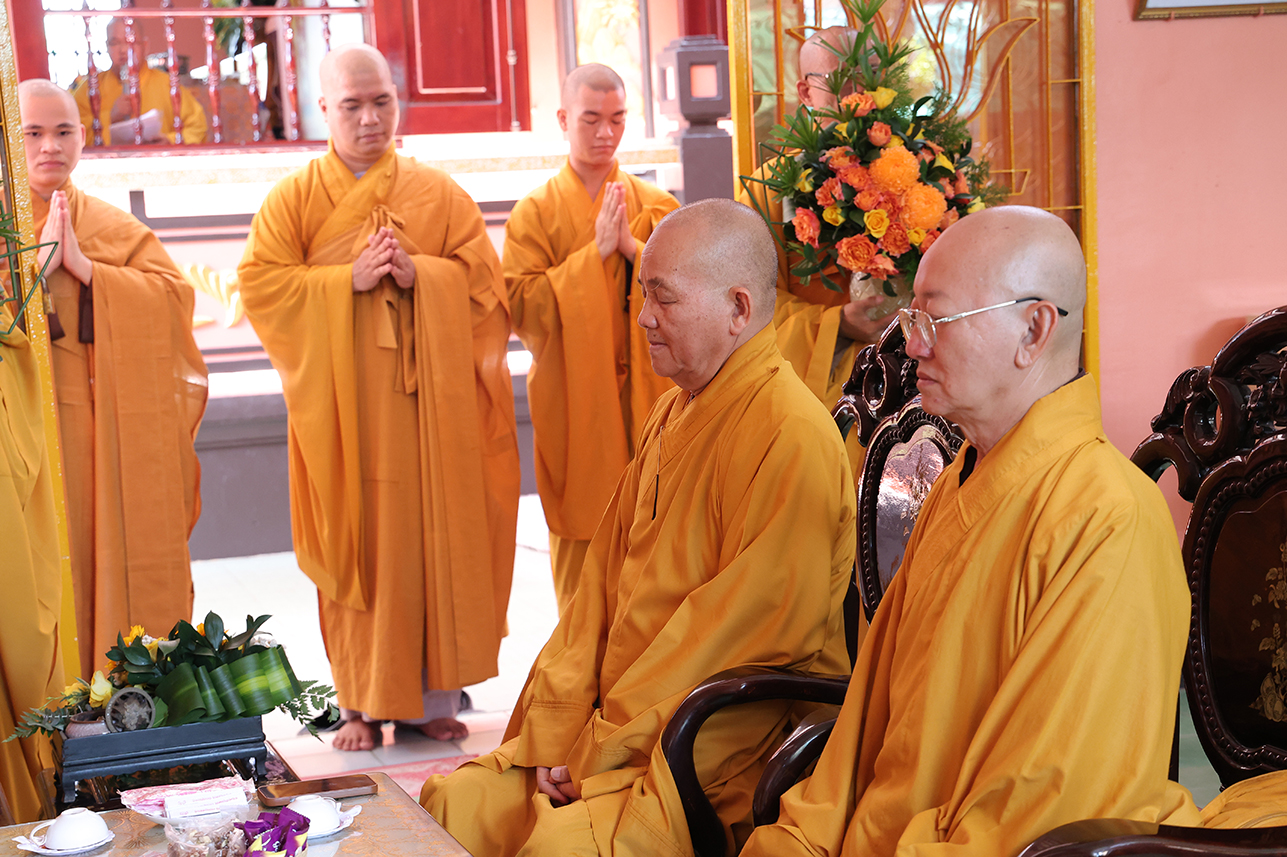 Quang lâm chứng minh tham dự buổi lễ có: TLHT. Thích Thiện Huệ – Thành viên HĐCM, Chứng minh BTS GHPGVN tỉnh Tây Ninh, Trụ trì chùa Thiên Khánh; HT. Thích Huệ Hồng, HT. Thích Thiện Tài – Đồng chứng minh BTS GHPGVN tỉnh; HT. Thích Minh Thiện – UV HĐTS, Phó ban Hoằng pháp TW, Chứng minh, cố vấn BTS GHPGVN tỉnh; TT. Thích Quảng Tâm – UV HĐTS, Phó ban Từ thiện xã hội TW, Trưởng BTS GHPGVN tỉnh; TT. Thích Minh Thọ – UV HĐTS, Phó BTS kiêm Trưởng ban Pháp chế GHPGVN tỉnh; cùng Chư Tôn đức trong thường trực BTS GHPGVN tỉnh Tây Ninh, Chư Tôn đức Tăng Ni trong và ngoài tỉnh đồng về tham dự.