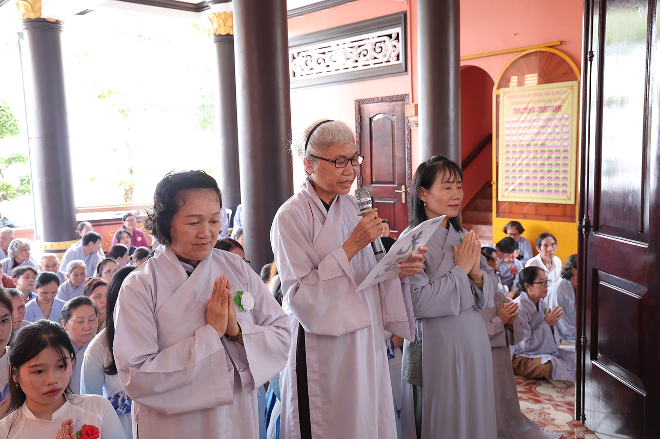 Đại diện Phật tử chùa Thiên Khánh đã kính dâng lời tác bạch tưởng nhớ Tứ Ân, bày tỏ tấm lòng tri ân sâu nặng đối với công ơn sinh thành dưỡng dục của cha mẹ, đồng thời nguyện sống xứng đáng với hạnh hiếu của người con Phật; tri ân đến Chư Tôn đức Tăng Ni đã không quản ngại khó nhọc, ngày đêm hoằng dương chánh pháp, dìu dắt hàng hậu học tu tập và trưởng dưỡng đạo tâm.