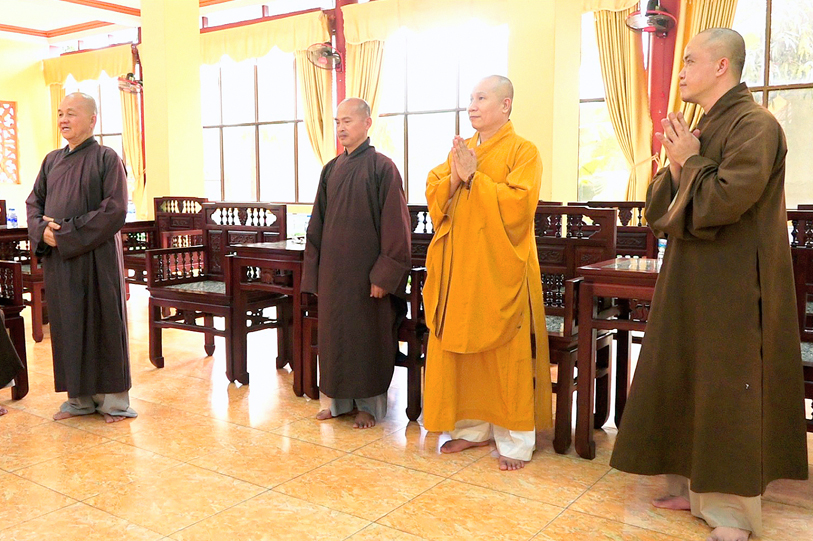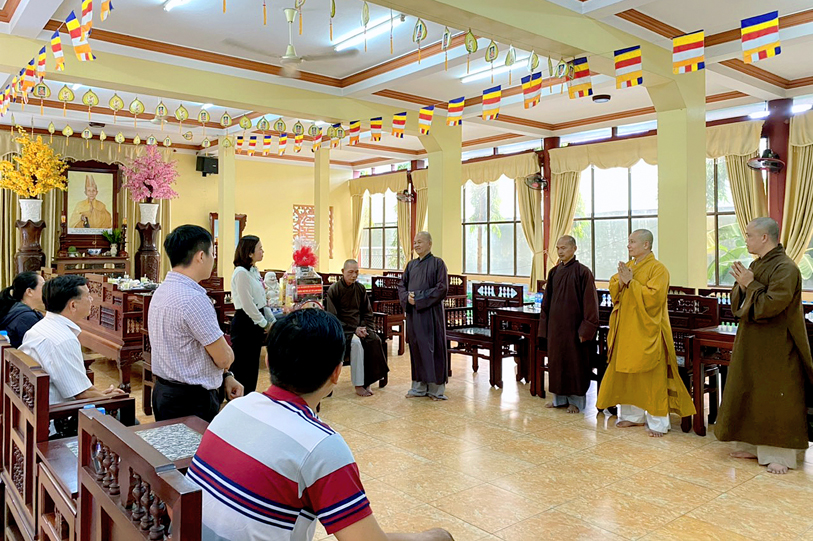 Đại diện Thường trực BTS Phật giáo tỉnh Long An tiếp phái đoàn có: Hòa thượng Thích Thiện Huệ – Chứng minh BTS GHPGVN tỉnh Long An; HT.Thích Minh Thiện – Ủy viên HĐTS, Phó Trưởng Ban Hoằng pháp TW, Trưởng Ban Trị sự Phật giáo tỉnh Long An; Đại đức Thích Đức Hoàng – Phó Ban Trị sự GHPGVN tỉnh Long An; ĐĐ. Thích Lệ Trí – Ủy viên HĐTS, Phó Ban Trị sự GHPGVN tỉnh Long An.