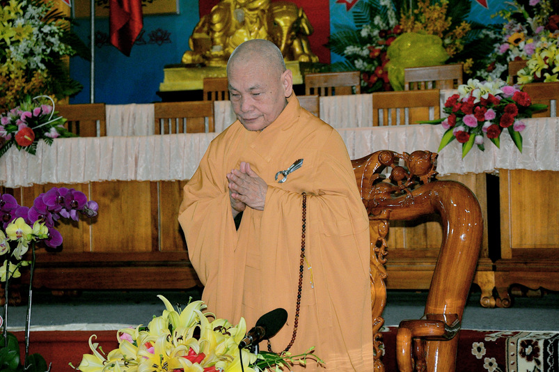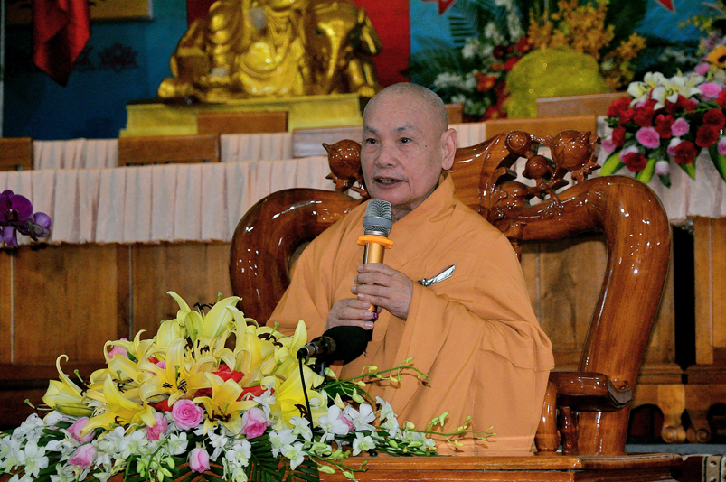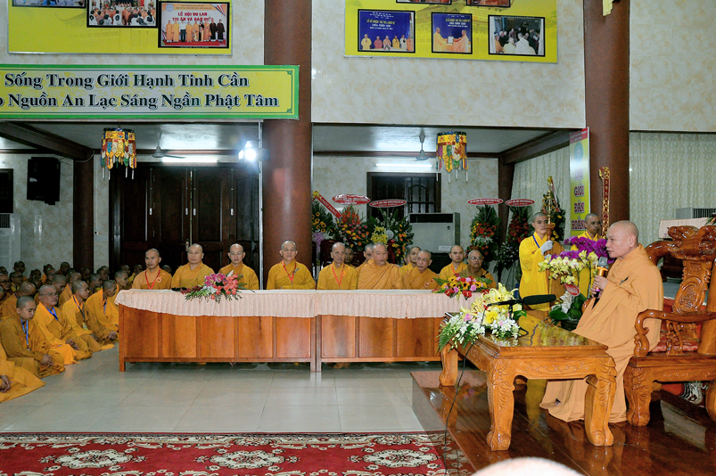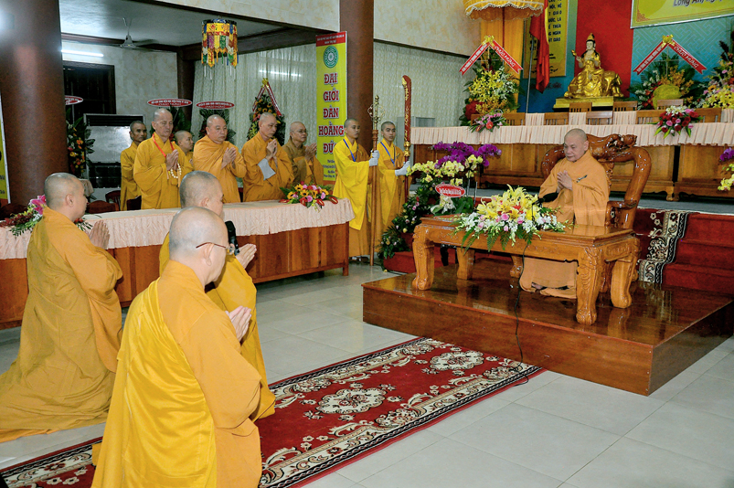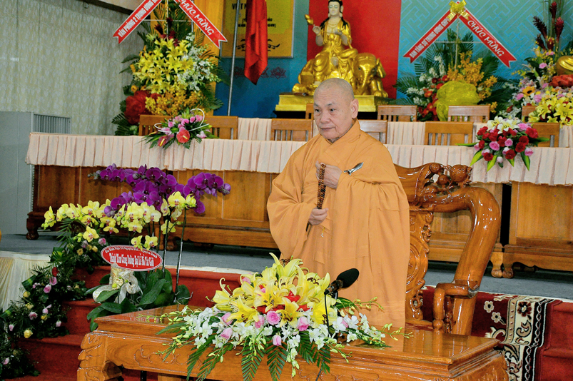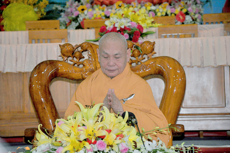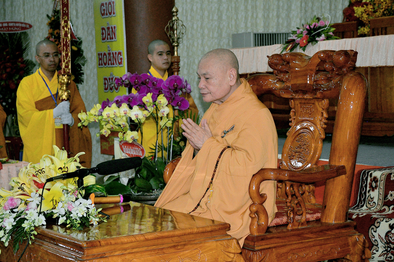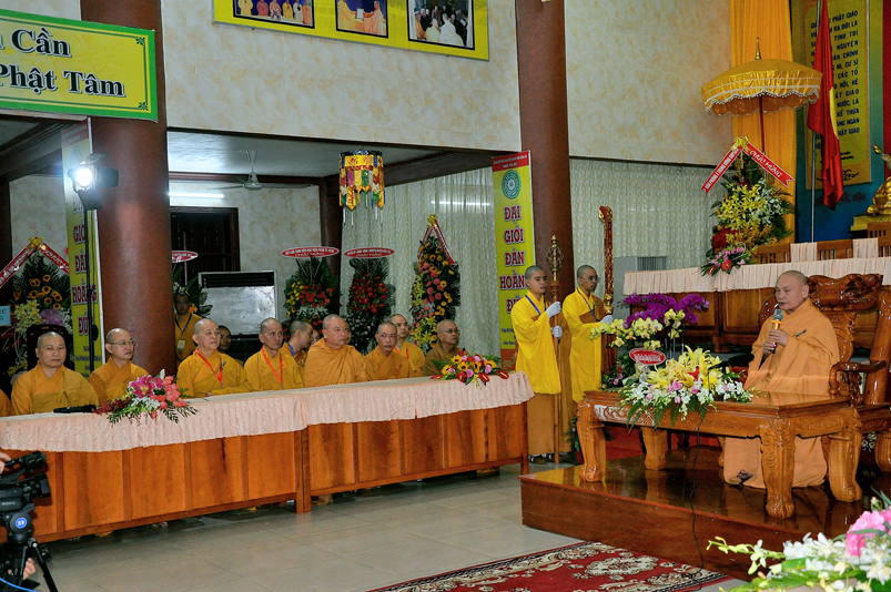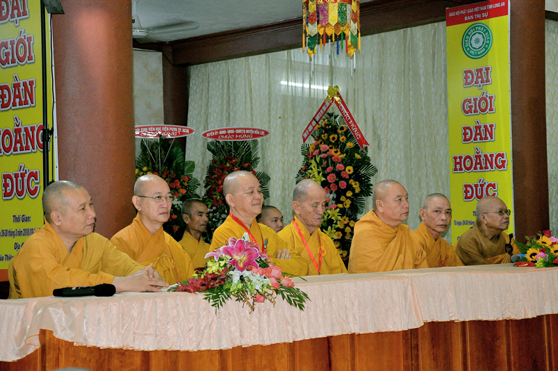 Trưởng lão Hòa thượng vô cùng hoan hỷ với các Phật sự tại Đại Giới Đàn Hoằng Đức. Ngài tán thán công đức của Ban Trị sự GHPGVN tỉnh Long An, Ban Tổ chức Đại Giới Đàn đã hoàn thành một Phật sự trọng đại cao quý, tạo thắng duyên cho các Giới tử gieo nhân lành vô lậu trong hiện tại và tương lai. Từ những lời dạy được trích dẫn từ kinh A-hàm, Ngài nhấn mạnh nhân duyên tốt đẹp về ‘thân người khó được’, ca ngợi công đức của ba bậc Trụ trì Tam Bảo; trong đó, bậc Thế gian Trụ trì Tam Bảo vô cùng quan trọng, làm nhịp cầu tiếp nối phát triển Phật pháp ở hiện tại, làm nơi an trú cho tất cả chúng sanh hướng về tu tập đạt được kết quả tốt đẹp ở tương lai.