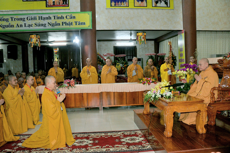 Tiếp đó, Trưởng lão Hòa thượng đã có thời Pháp thoại chân tình, ân cần khuyên dạy các Giới tử hiện diện có cơ duyên được thọ giới, thì phải trân trọng giới đã thọ để tu tập hành trì, thành tựu giới đức.