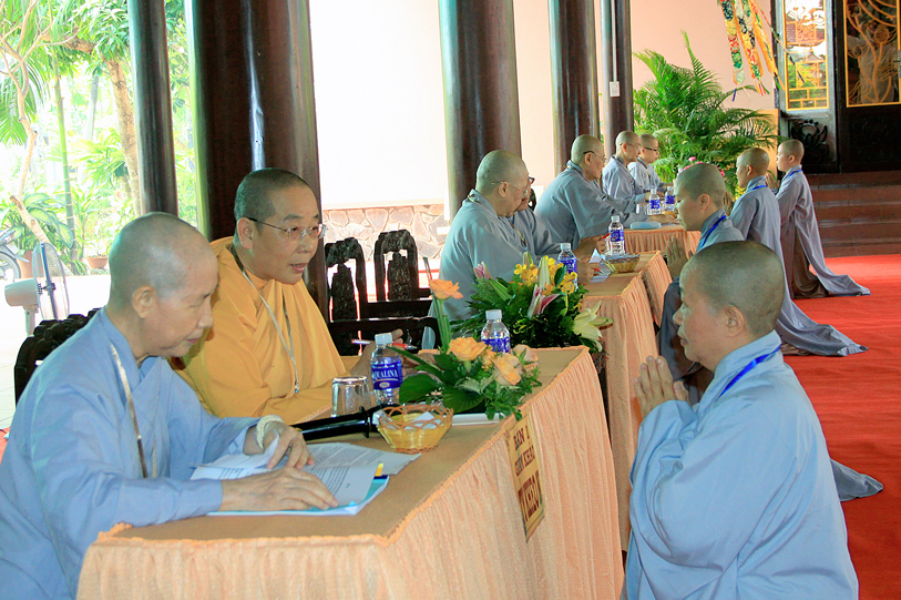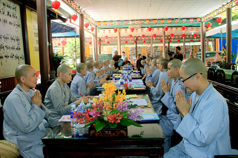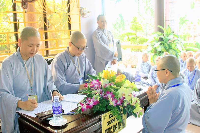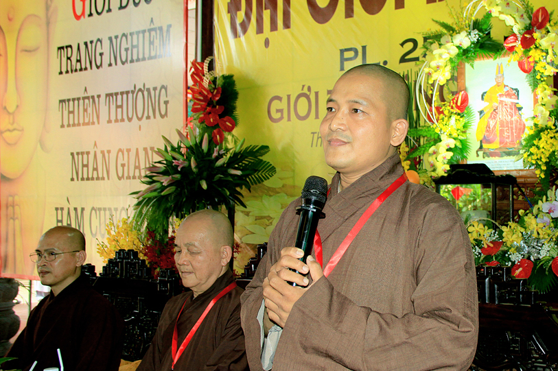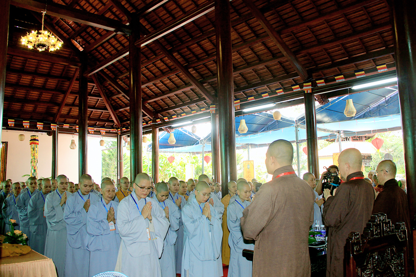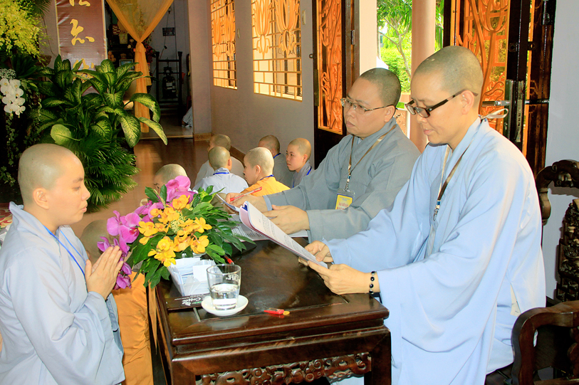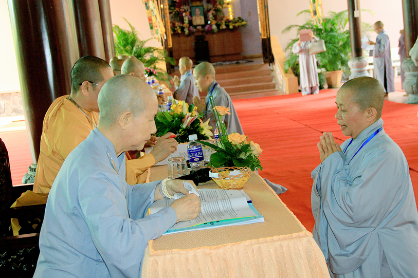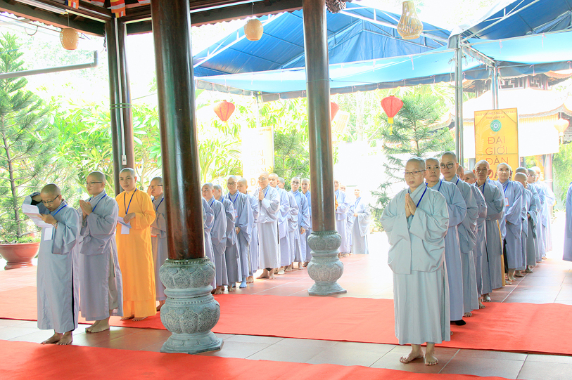 Tại đây, Hòa thượng tán thán công đức của chư Tôn đức Ni trong Ban giám khảo các đàn và có lời thăm hỏi động viên khích lệ các giới tử Ni, an tâm khảo thí. Lời chỉ dụ, sách tấn của Hòa thượng khiến cho Giới tử cảm thấy tinh thần nhẹ nhàng, thoải mái trước giờ đăng đàn khảo hạch. Đặc biệt, Ngài còn khuyến khích các giới tử tham gia tụng luật, và hứa sẽ có phần quà trao tặng cho những giới tử đạt thứ hạng cao.