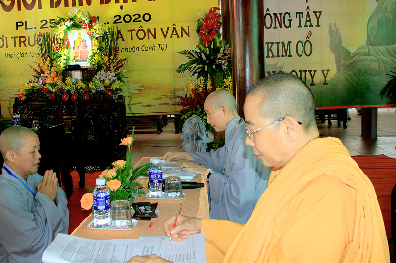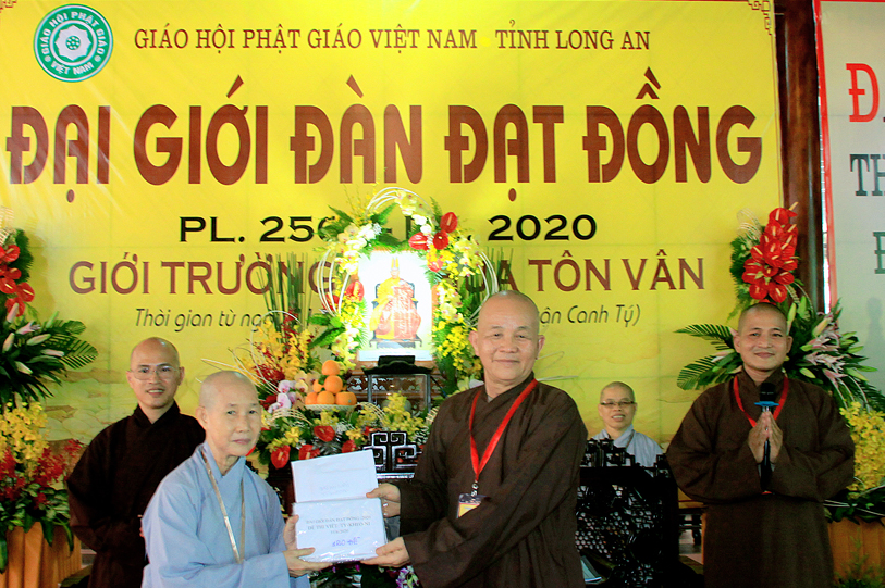 Chiều nay ngày 11/6/ 2020 (nhằm ngày 20/ 4 nhuận Canh Tý), Giới trường Tôn Vân trú xứ Ni trân trọng cung đón HT. Thích Minh Thiện -UVHĐTS, Phó Trưởng ban HPTW, Trưởng ban Trị sự kiêm Trưởng ban Tổ chức, Chánh chủ khảo Đại giới đàn Đạt Đồng; TT. Thích Lệ Trí- Phó Ban tổ chức, Phó chánh chủ khảo; Đại đức Thích Lệ Duyên- Chánh thư ký GHPGVN tỉnh Long An, thân lâm về trường Khảo thí ban lời khai mạc.