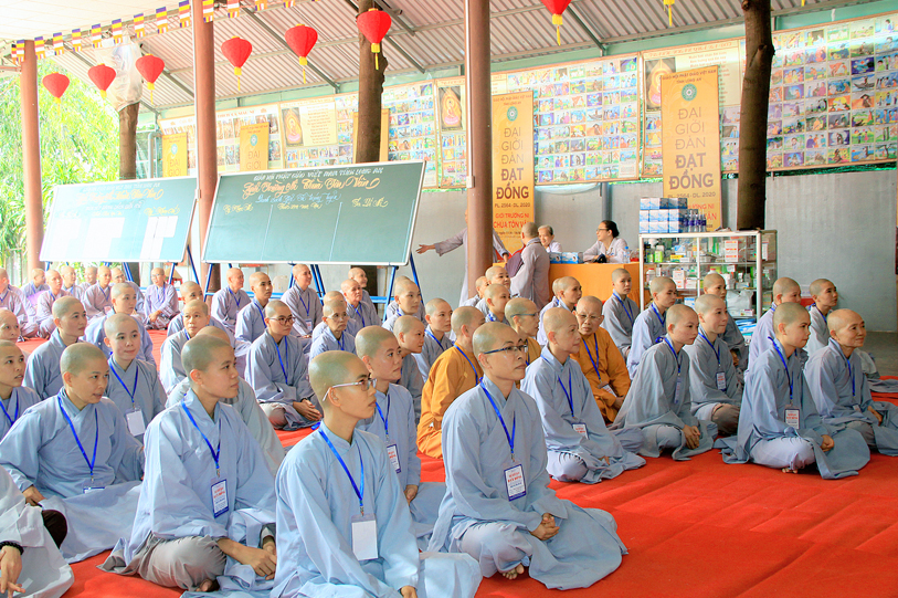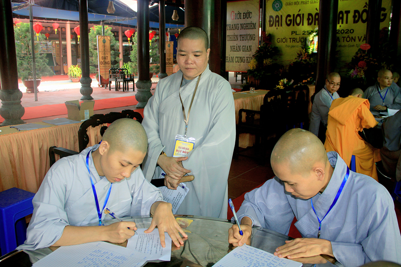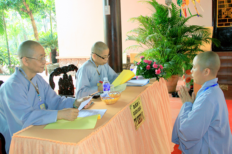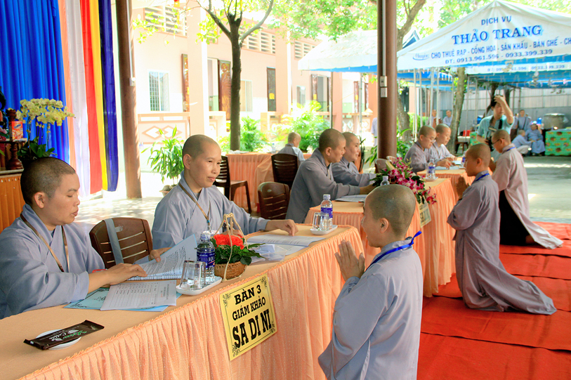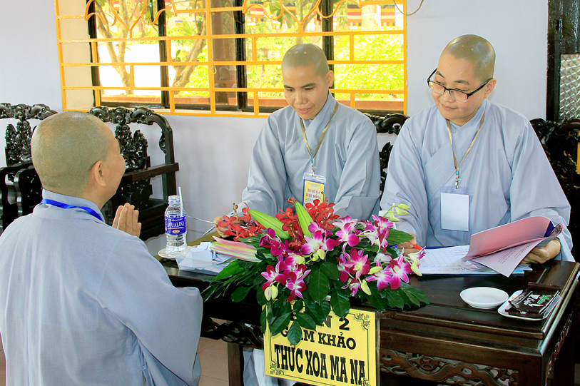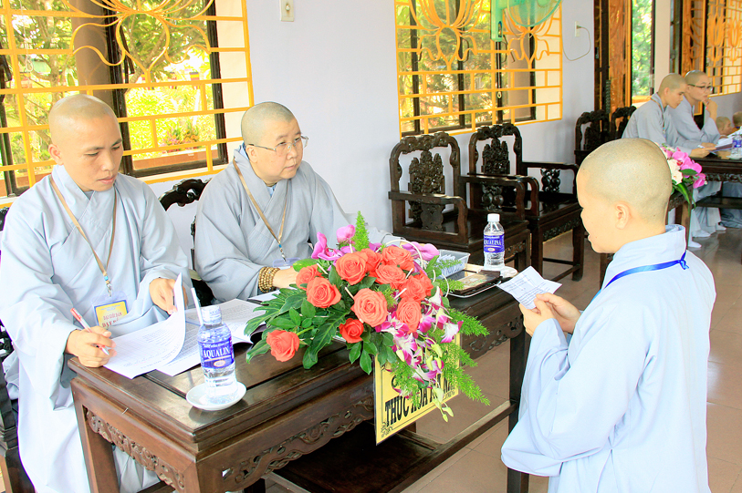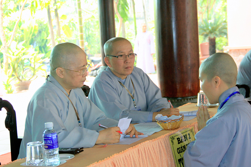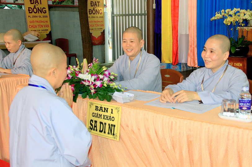 Đúng 14g, ba đàn giới Sa-di-ni, Thức-xoa-ma-na, Tì-kheo-ni tại giới trường Tôn Vân Đại giới đàn Đạt Đồng chính thức bắt đầu phần thi vấn đáp. Sau phần thi này, Giới tử đàn Tì-kheo-ni tiếp tục phần thi tự luận.