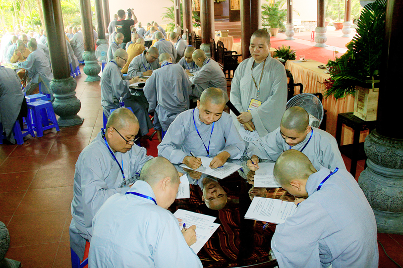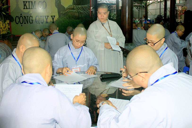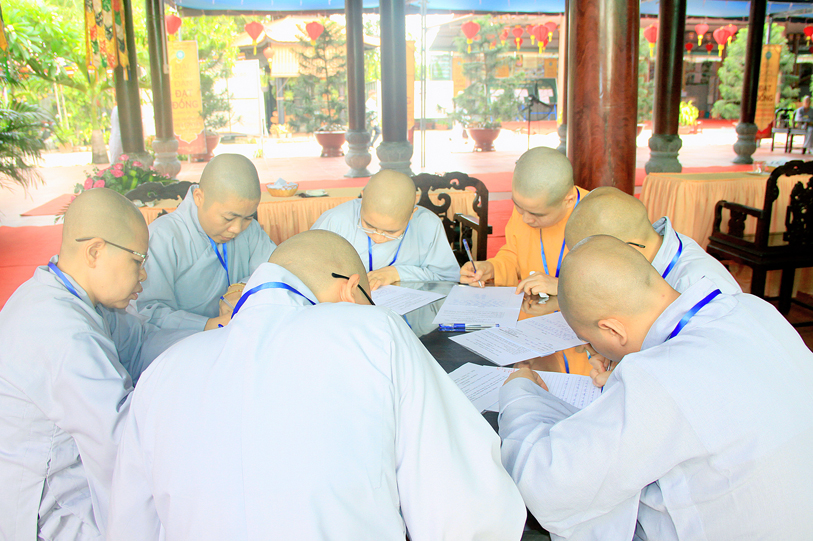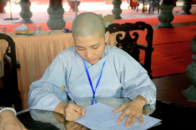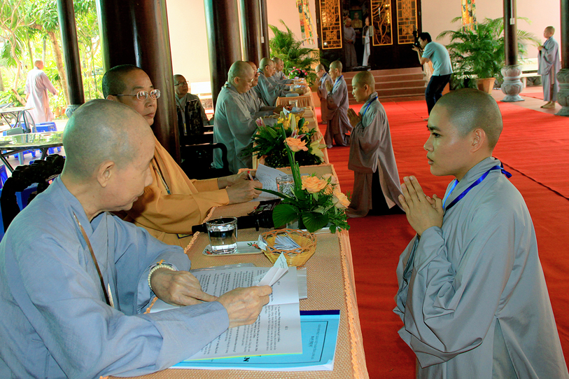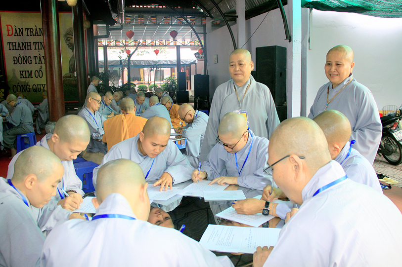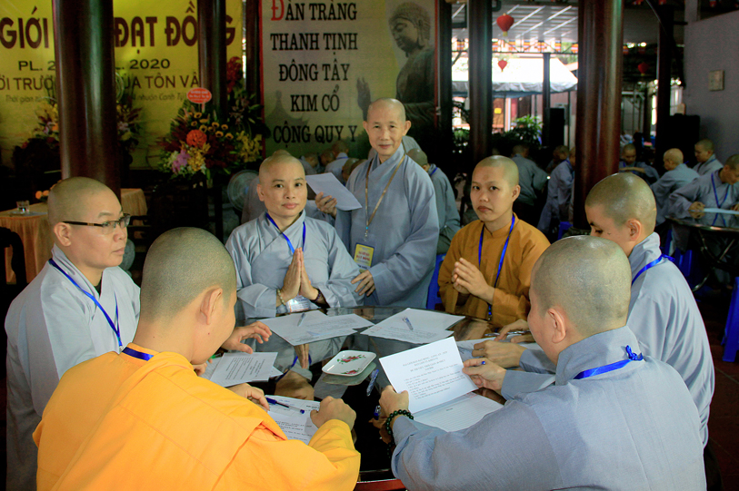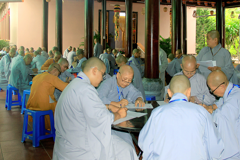 Đúng 14g, ba đàn giới Sa-di-ni, Thức-xoa-ma-na, Tì-kheo-ni tại giới trường Tôn Vân Đại giới đàn Đạt Đồng chính thức bắt đầu phần thi vấn đáp. Sau phần thi này, Giới tử đàn Tì-kheo-ni tiếp tục phần thi tự luận.
