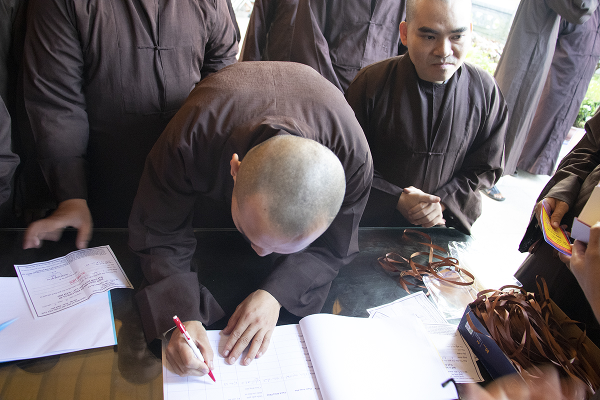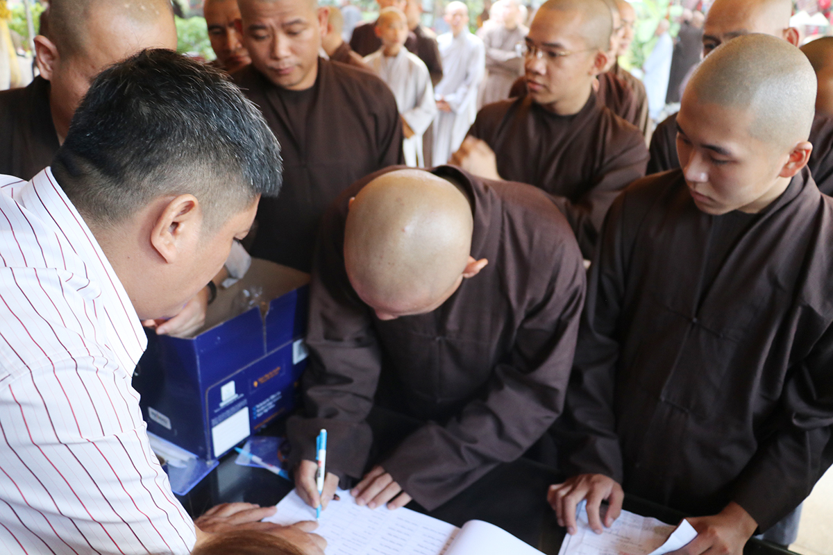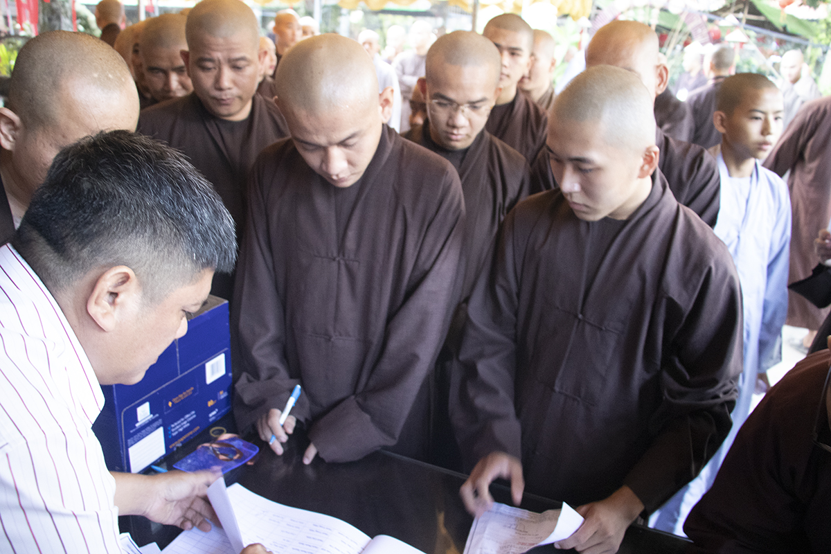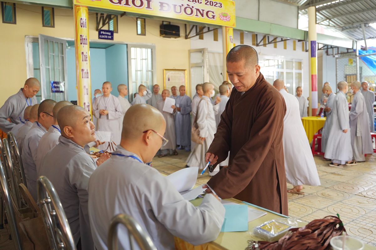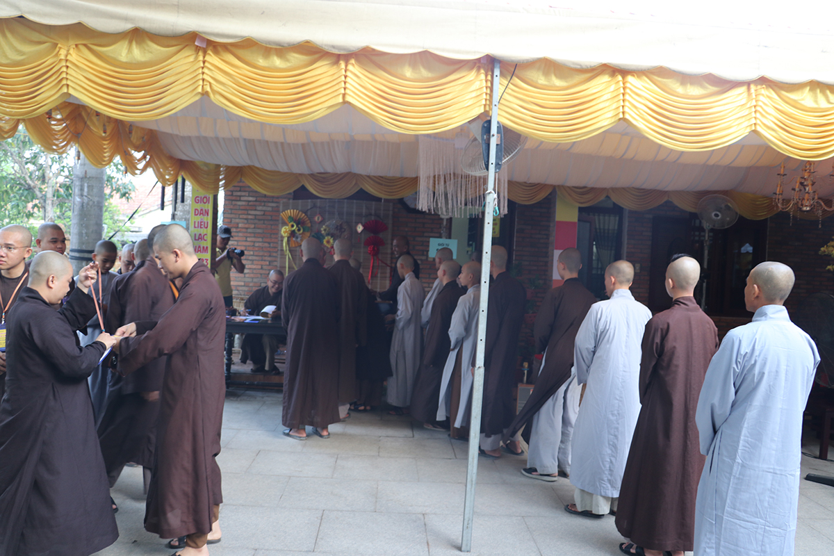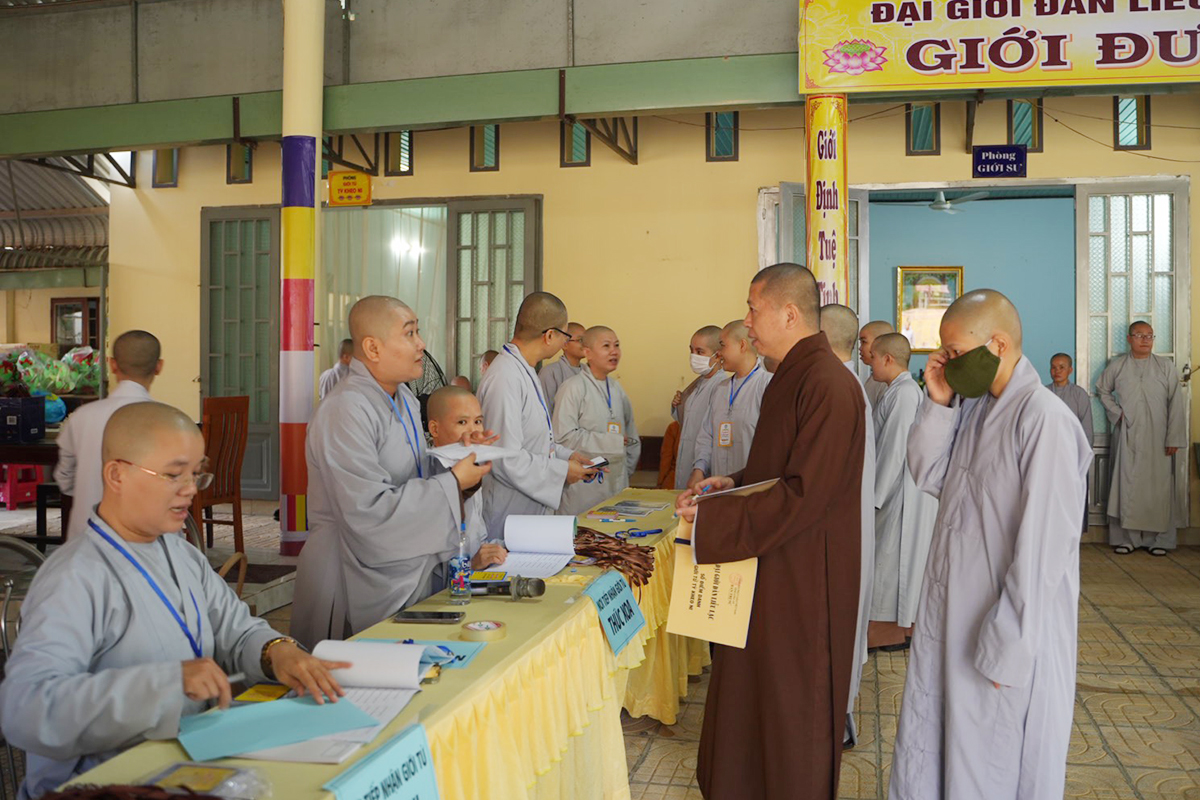 Theo đó, Ban Quản Giới tử đã hướng dẫn Giới tử nhập Giới trường, nhận phòng, an đơn và nhận thẻ đeo. Trong suốt quá trình sinh hoạt tại Giới trường, Tăng-Ni Giới tử không được tự ý đi ra ngoài Giới trường cho đến khi thời gian Đại Giới đàn hoàn mãn, trường hợp có duyên sự cần thiết Giới tử phải xin phép và được sự chấp thuận của Ban tổ chức, Ban Quản Giới tử. Đặc biệt, Giới tử không được mang theo, sử dụng các thiết bị điện tử (máy vi tính xách tay, máy tính bảng, điện thoại di động, máy thu phát sóng wifi và FM, máy nghe nhạc…) trong suốt thời gian lưu trú tại Giới trường.