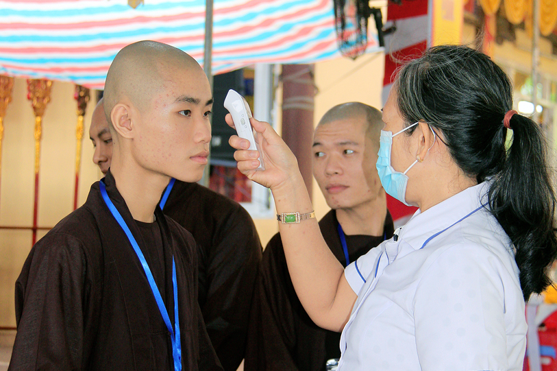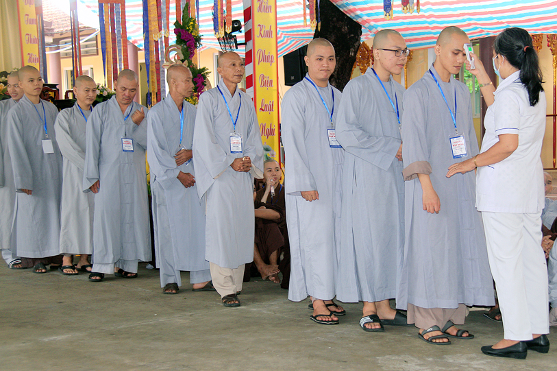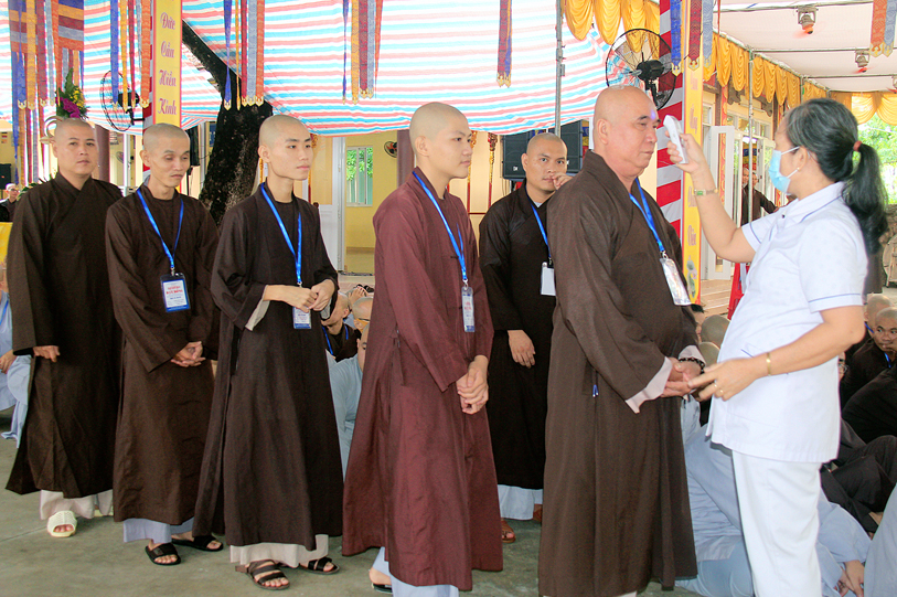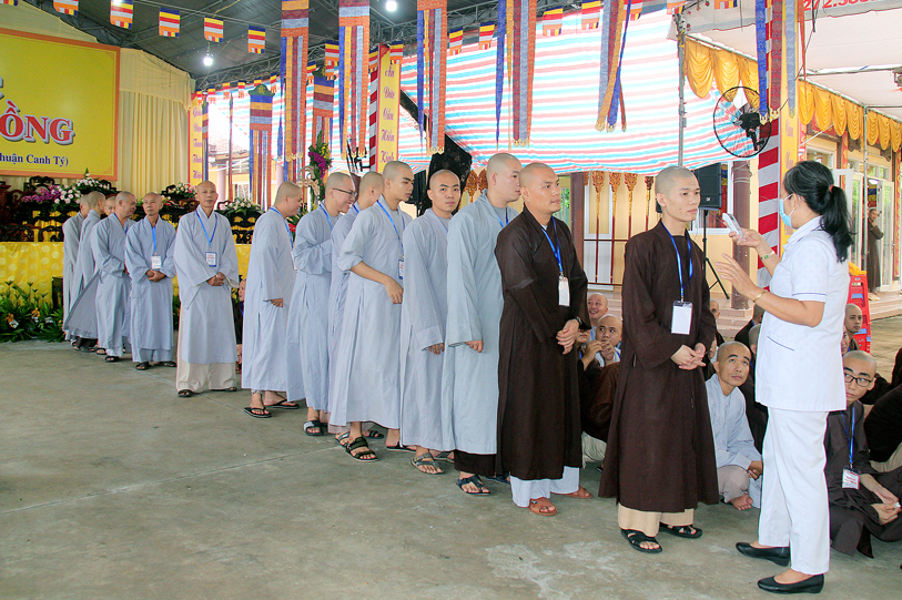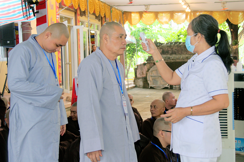 Đặc biệt, tuân thủ những quy định về phòng, chống dịch Covid-19, Ban tổ chức đã cử các nhân viên y tế túc trực trước cổng Giới trưởng để kiểm tra y tế và hỗ trợ Tăng Ni về thọ giới yên tâm về sức khỏe.
