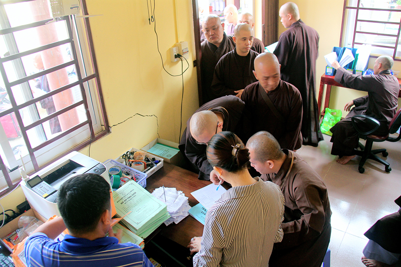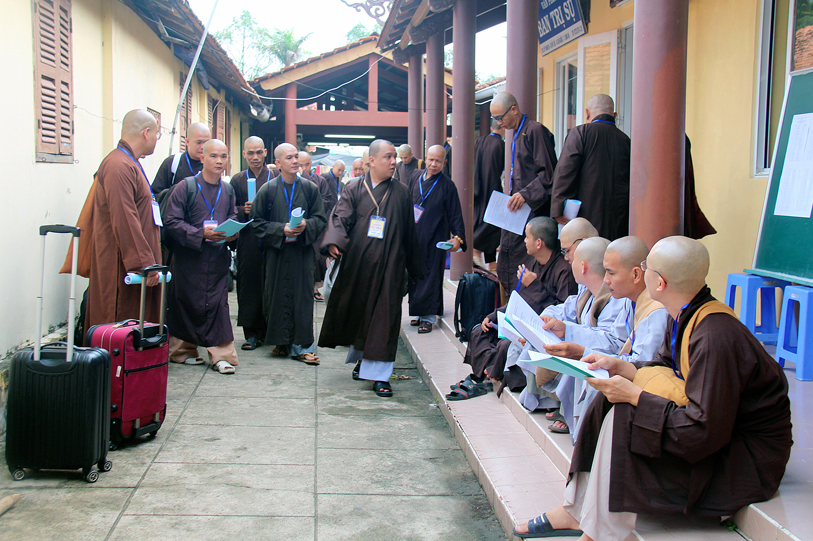 Từ sáng sớm, các giới tử từ các nơi về làm thủ tục nhập Giới Đàn trong tâm trạng vừa vui mừng vừa lo âu. Vui mừng vì được cầu giới pháp ở Tuyển Phật Trường, lo âu vì phần khảo thi nghiêm túc của giới đàn.