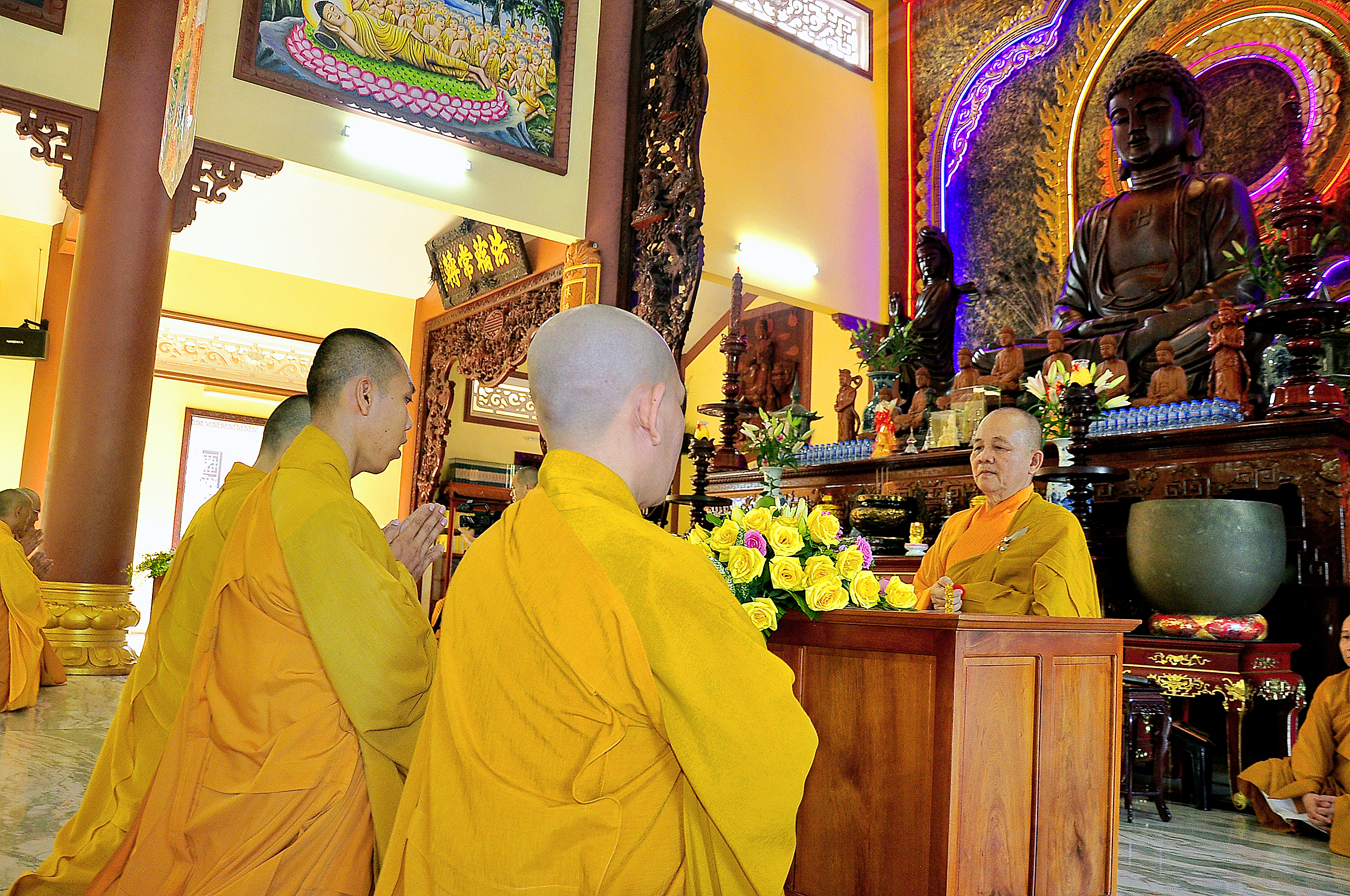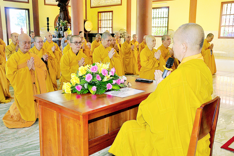 HT. Thích Thiện Huệ – Chứng minh BTS GHPGVN tỉnh Long An; HT.Thích Minh Thiện – Ủy viên HĐTS, Phó Trưởng Ban Hoằng pháp TW, Trưởng Ban Trị sự Phật giáo tỉnh Long An, Trưởng ban Tổ chức 11 trú xứ an cư kiết hạ Phật giáo Long An; TT. Thích Quảng Tâm – Ủy viên HĐTS, Phó Thường trực Ban Trị sự Phật giáo tỉnh Long An; Đại đức Thích Đức Hoàng – Phó Trưởng Ban Trị sự GHPGVN tỉnh Long An; ĐĐ. Thích Lệ Trí – Ủy viên HĐTS, Phó Trưởng ban kiêm Trưởng Ban Giáo dục Phật giáo tỉnh Long An; Đại đức Thích Lệ Duyên – Chánh thư ký BTS Phật giáo Long An; cùng chư tôn đức Tăng Ni Phật giáo Long An.
