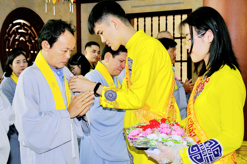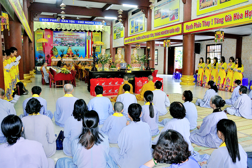 Tiếp đó, Hòa thượng trân trọng nêu cao tinh thần hiếu đạo của dân tộc Việt Nam đã có từ ngàn xưa. Thời gian có đi qua, lịch sử vẫn còn đó hình ảnh các vua Trần vì nước yêu dân, các vị thiền sư sẵn sàng “cởi áo cà sa, khoác chiến bào” đem lại bình yên cho xã hội. Vì vậy, Hòa thượng nhấn mạnh, tất cả Phật tử đã quy y Tam Bảo, đã từng sống trong pháp âm vi diệu của Phật Đà, thì hãy biết giữ lòng thanh tịnh, hiếu thuận với hai đấng sinh thành. Cha mẹ chưa hiểu đạo hãy tạo cơ hội giúp cha mẹ phát thiện tâm. Người đã khởi tâm lành thì cần nên trân trọng.