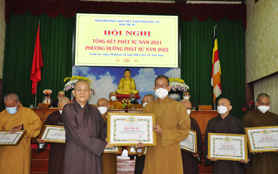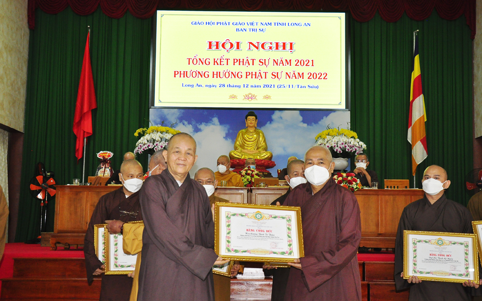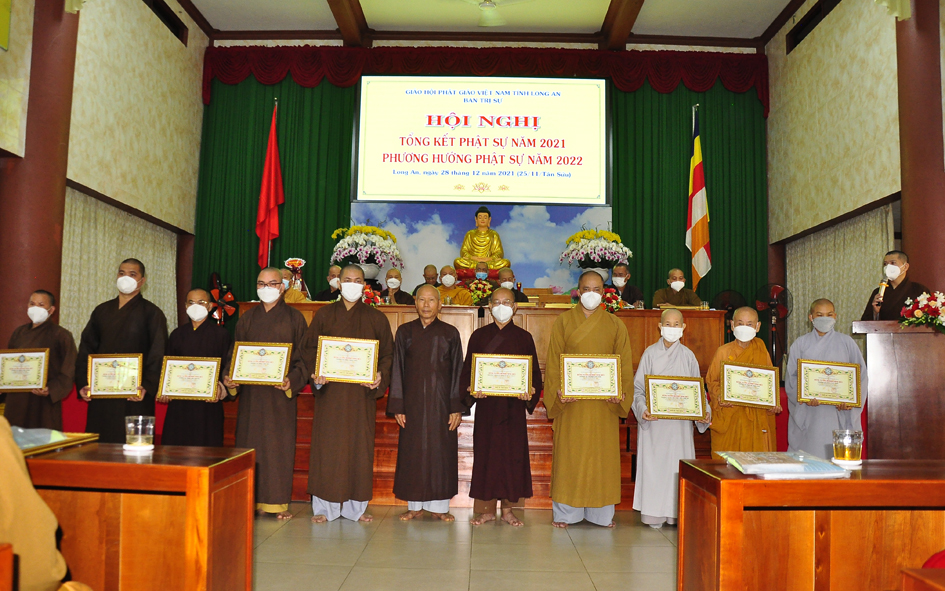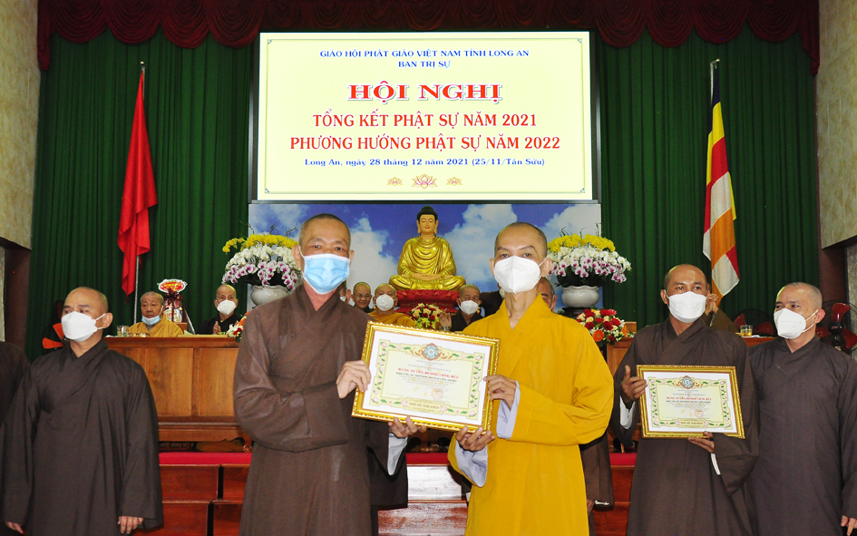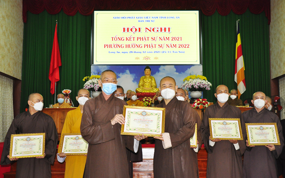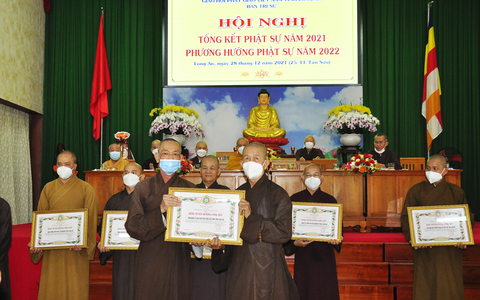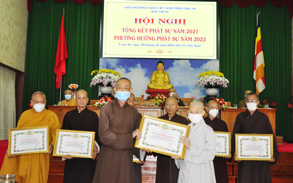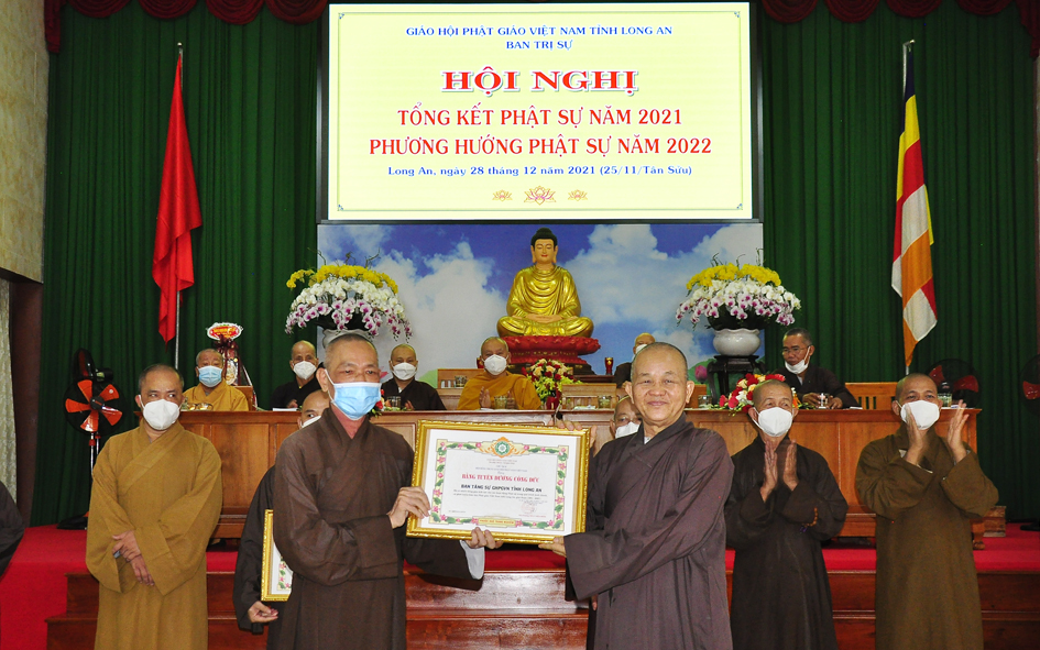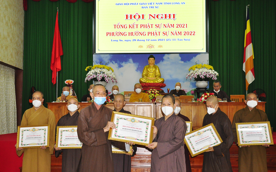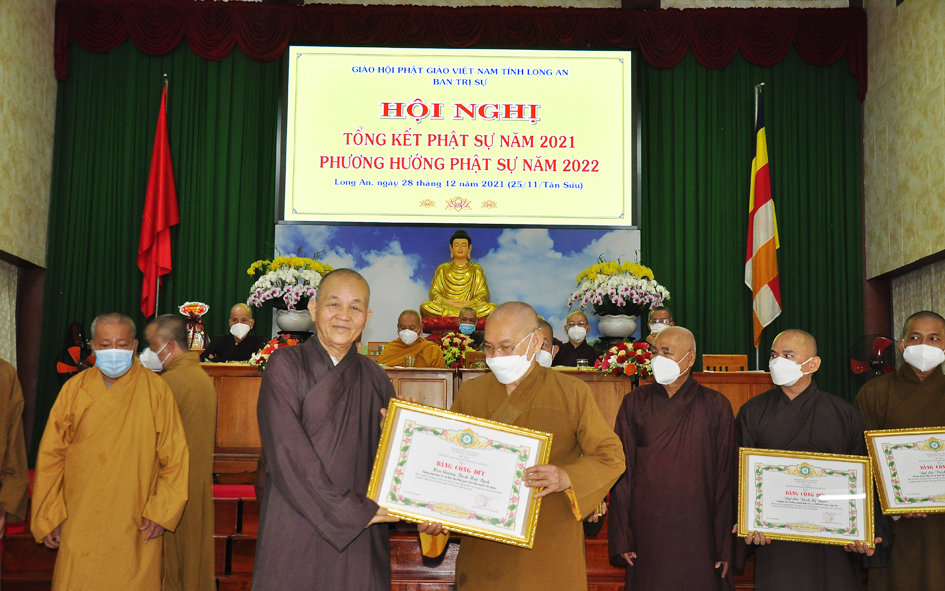 Sáng ngày 28 tháng 12 năm 2021, Ban Trị sự GHPGVN tỉnh Long An tổ chức hội nghị Tổ chức công tác Phật sự năm 2021 và triển khai phương hướng hoạt động năm 2022 tại Hội trường văn phòng Ban trị sự GHPGVN tỉnh Long An, (chùa Thiên Châu, Phường 3, Tp Tân An, tỉnh Long An).