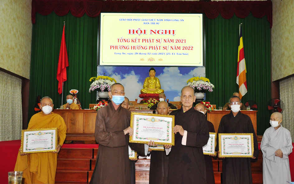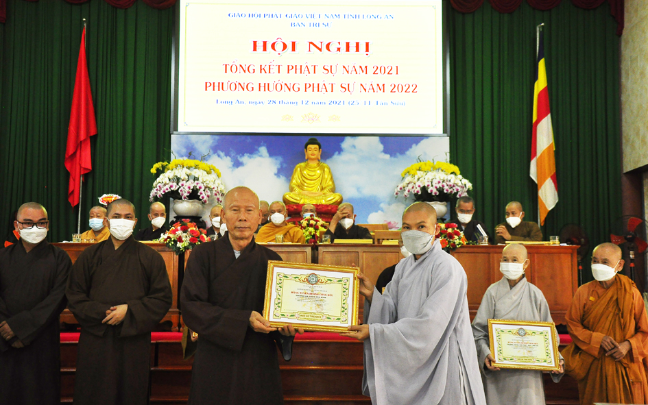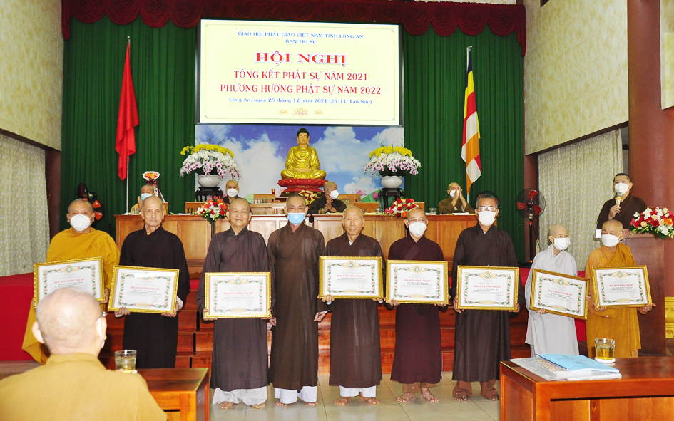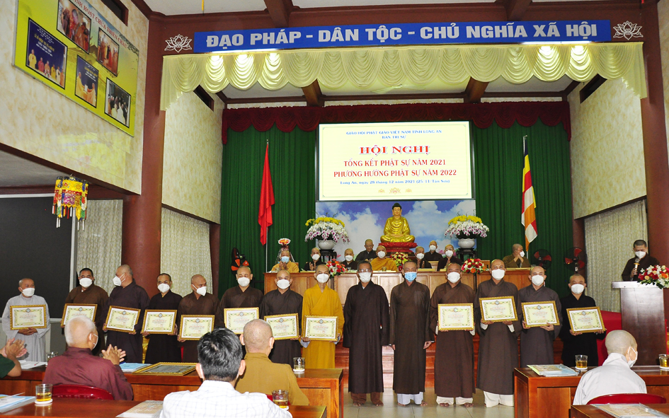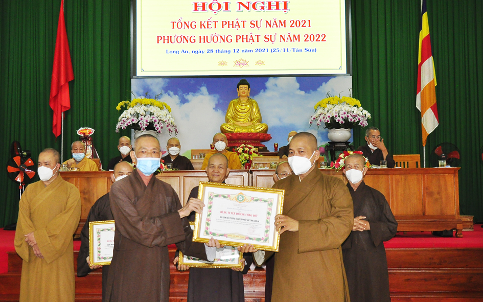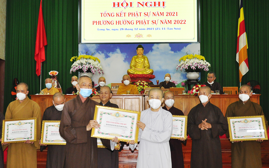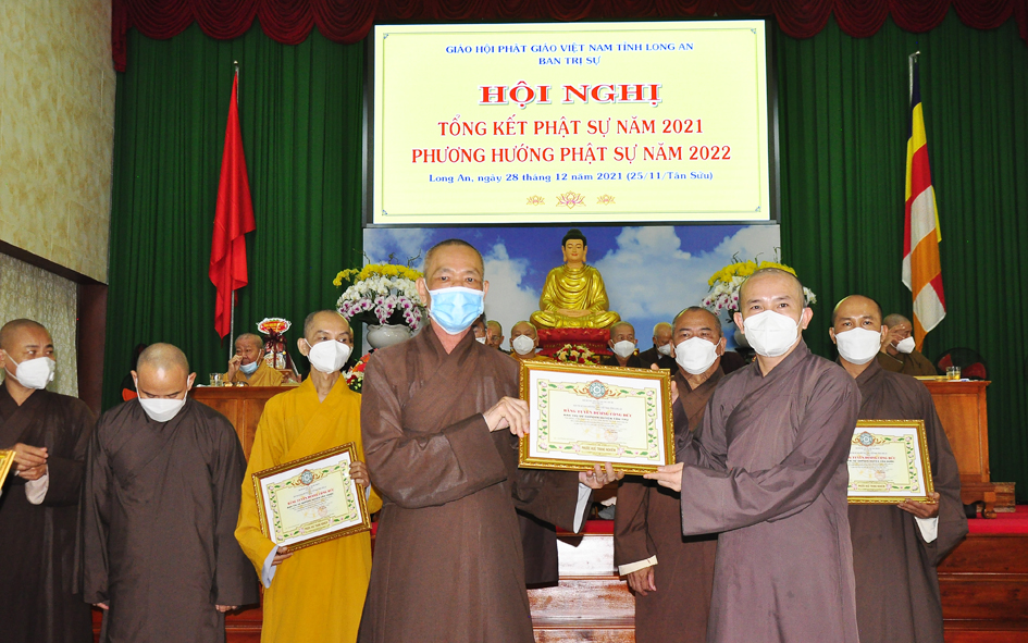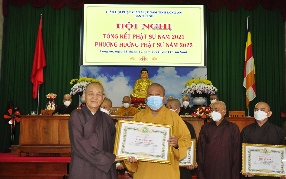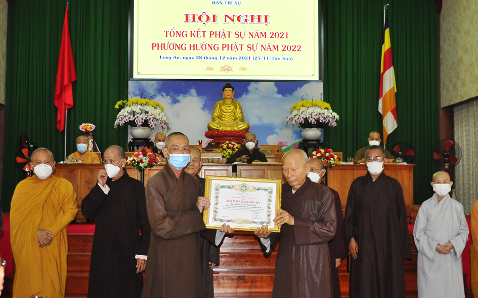 Sáng ngày 28 tháng 12 năm 2021, Ban Trị sự GHPGVN tỉnh Long An tổ chức hội nghị Tổ chức công tác Phật sự năm 2021 và triển khai phương hướng hoạt động năm 2022 tại Hội trường văn phòng Ban trị sự GHPGVN tỉnh Long An, (chùa Thiên Châu, Phường 3, Tp Tân An, tỉnh Long An).