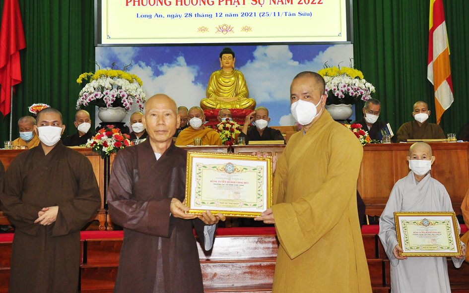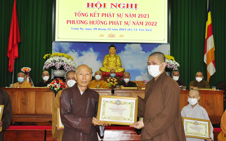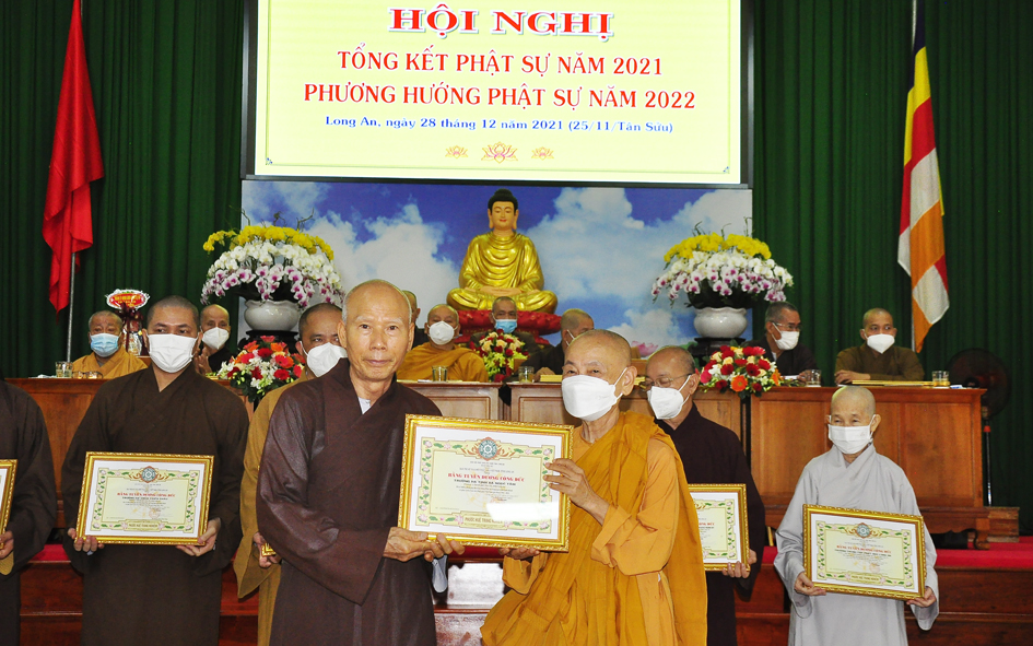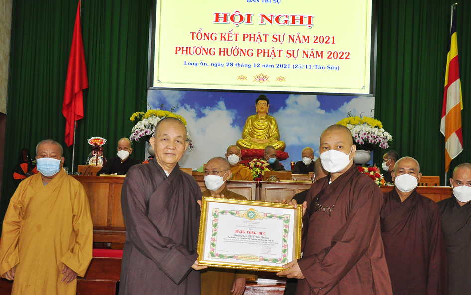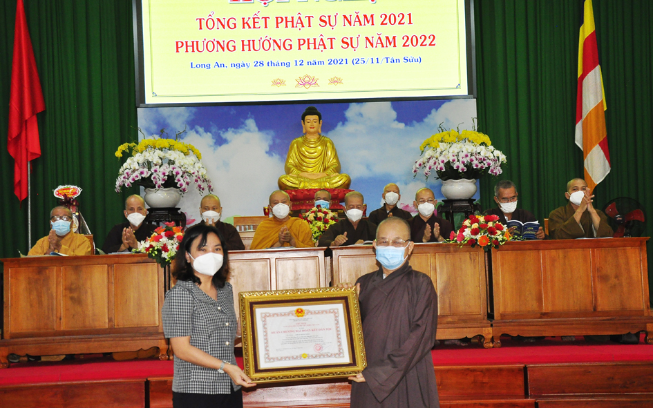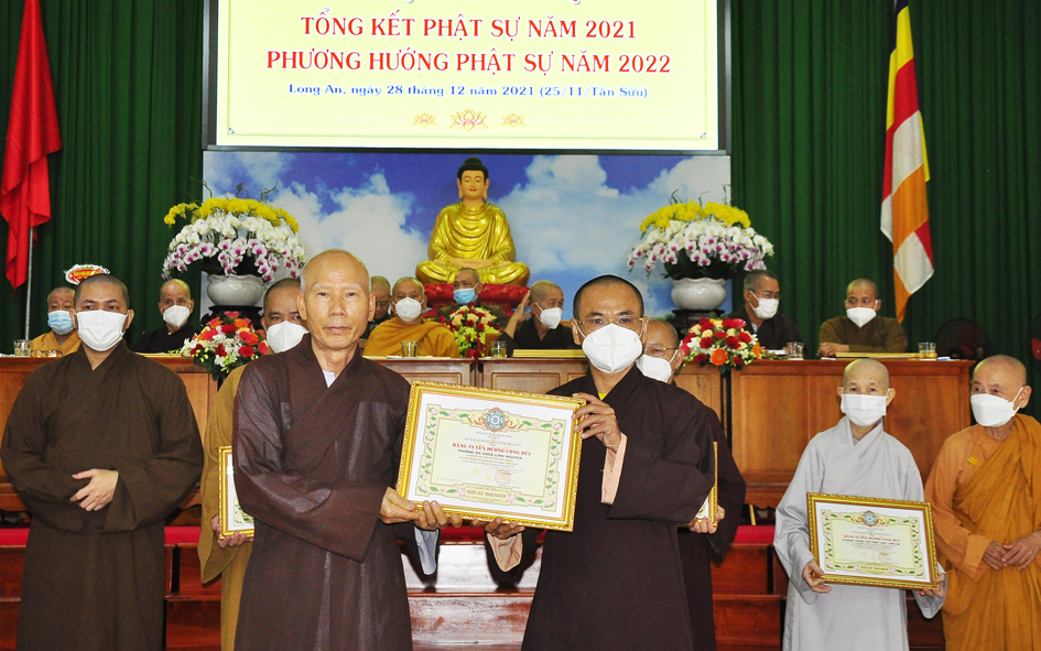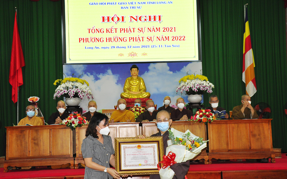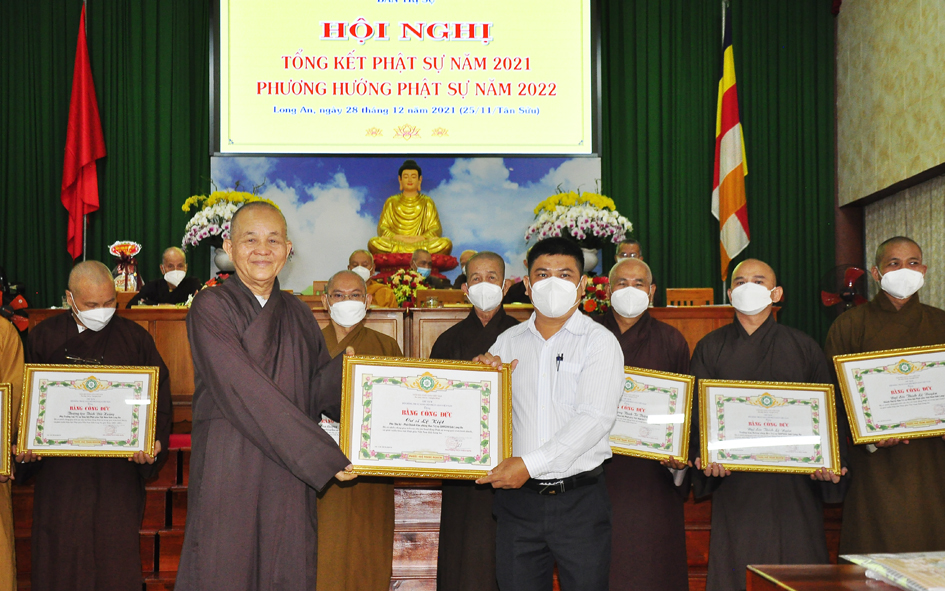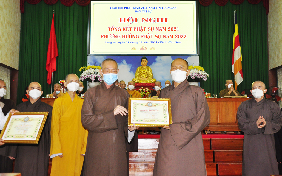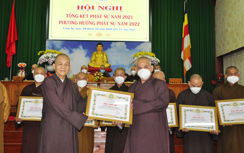 Sáng ngày 28 tháng 12 năm 2021, Ban Trị sự GHPGVN tỉnh Long An tổ chức hội nghị Tổ chức công tác Phật sự năm 2021 và triển khai phương hướng hoạt động năm 2022 tại Hội trường văn phòng Ban trị sự GHPGVN tỉnh Long An, (chùa Thiên Châu, Phường 3, Tp Tân An, tỉnh Long An).