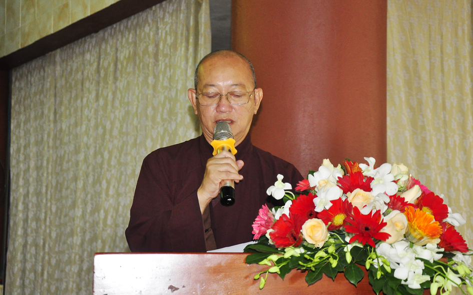 Tiếp theo, Đại đức Thích Lệ Duyên – Chánh thư ký BTS GHPGVN tỉnh báo cáo tổng kết hoạt động Phật sự năm 2021. Đại đức cho biết, dù bị ảnh hưởng bởi đại dịch Covid-19 nhưng Ban Trị sự GHPGVN thành tựu được nhiều Phật sự.