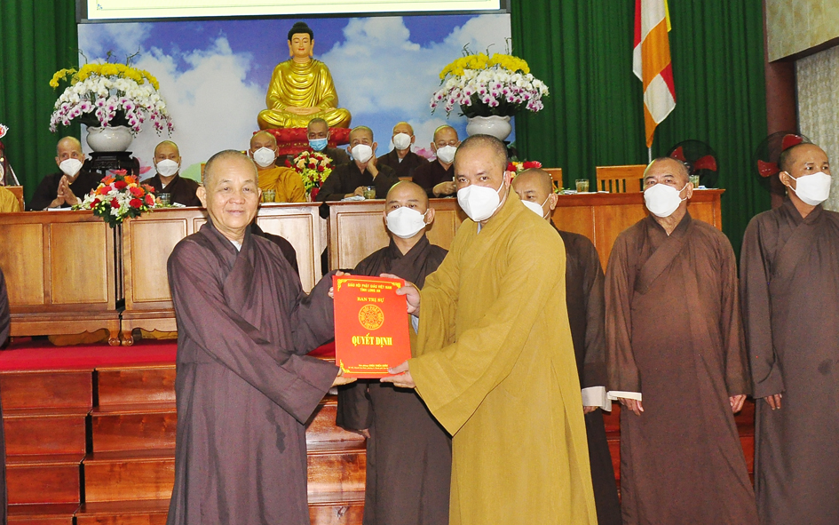 Hoà thượng Thích Minh Thiện đã trao quyết định công nhận nhân sự cho 13 Ban Trị Sự GHPGVN huyện, thị xã, thành phố đã tổ chức thành công đại hội đại biểu Phật giáo cấp huyện nhiệm kỳ 2021-2026.