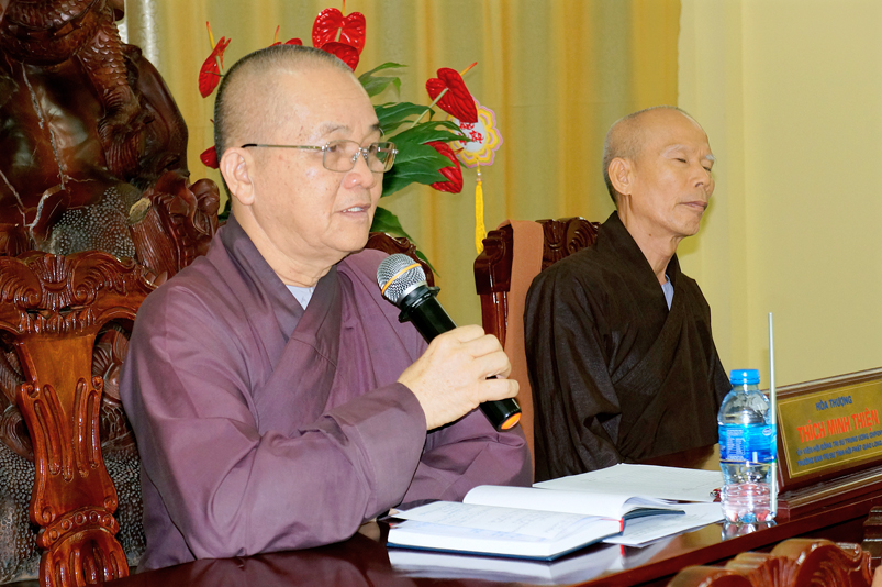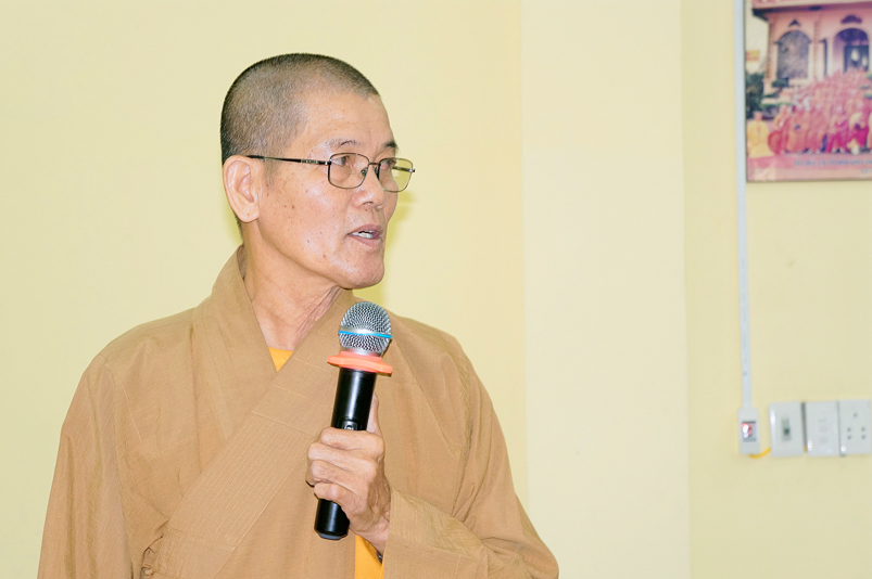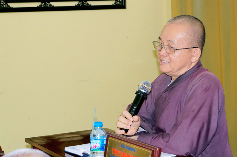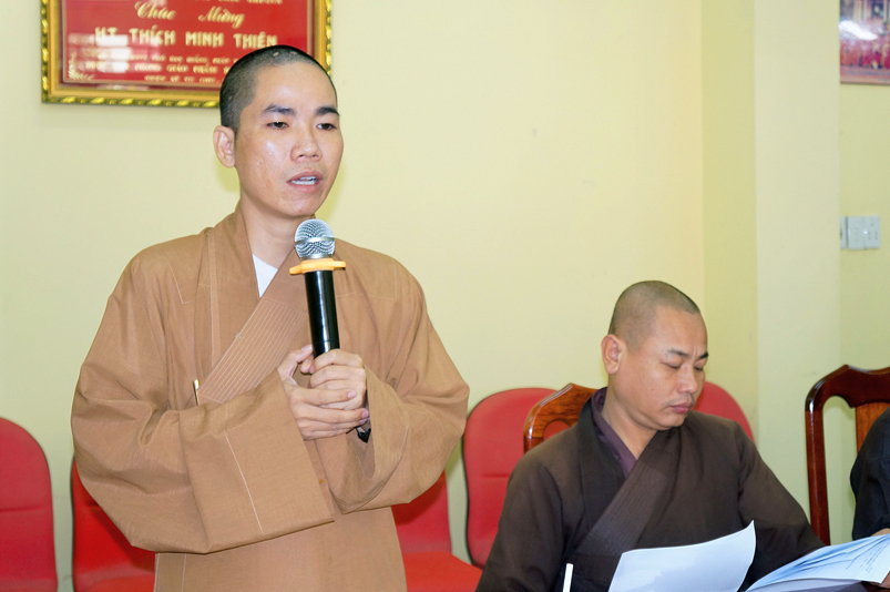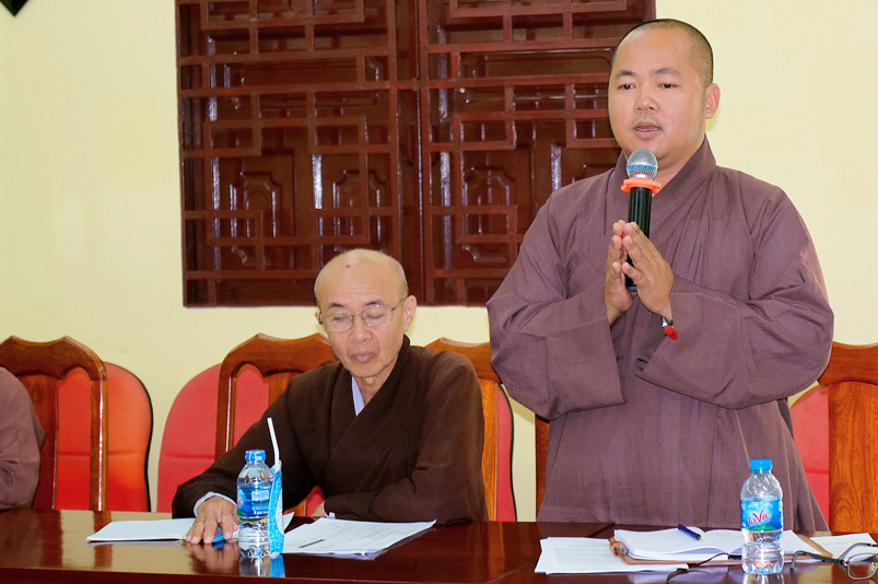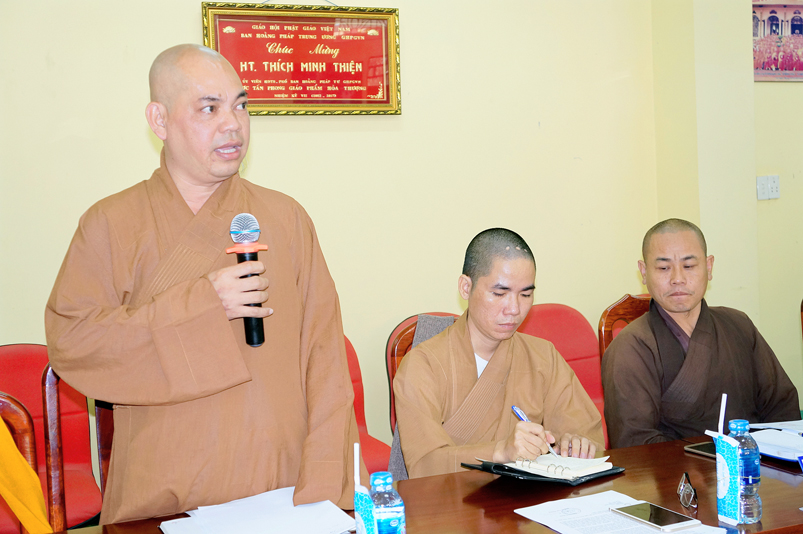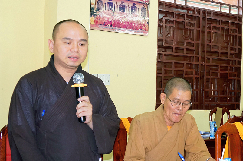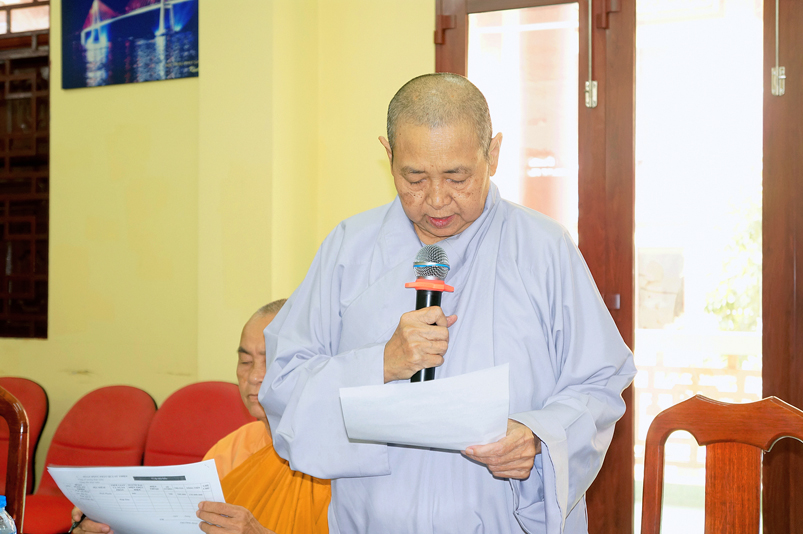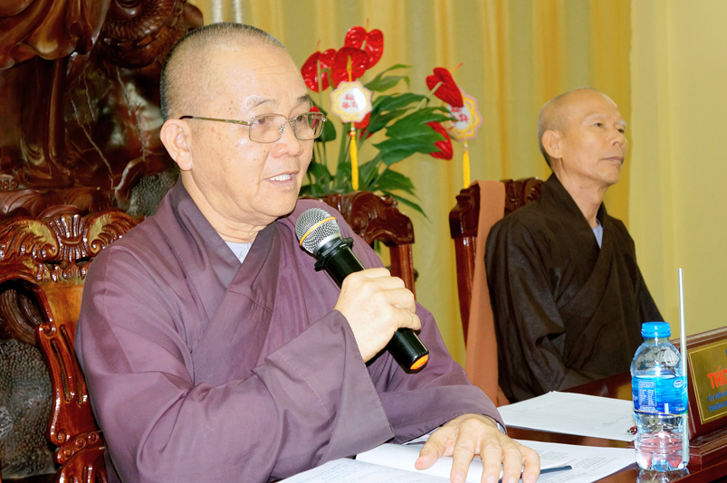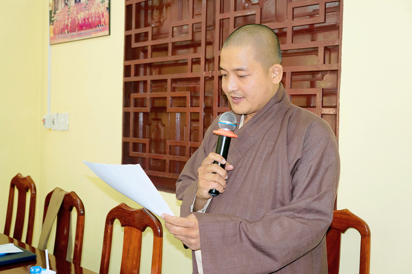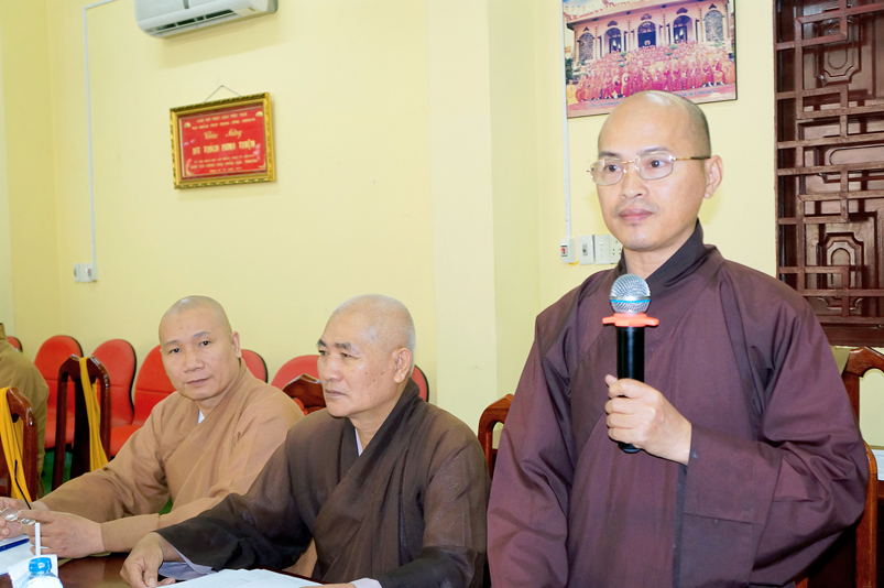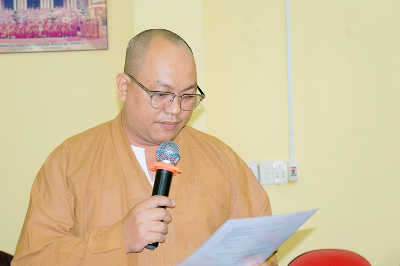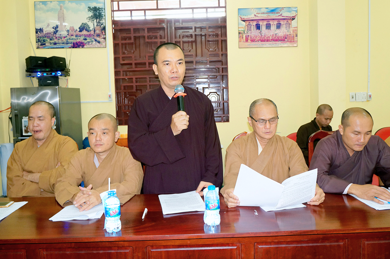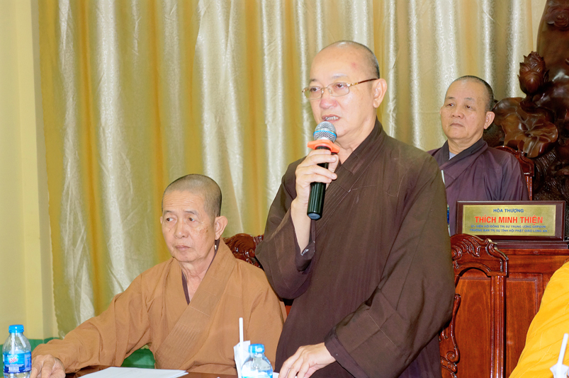 Tiếp theo, TT.Thích Quảng Tâm- Ủy viên HĐTS, Phó Trưởng ban thường trực Ban Trị sự GHPGVN tỉnh Long An thay mặt Thường trực BTS tỉnh có ý kiến hướng hoạt động trên cơ sở báo cáo của các huyện, thị, thành phố và các ban trực thuộc BTS tỉnh.