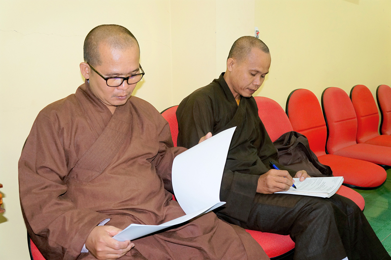 Ban Hoằng Pháp – ĐĐ.Thích Lệ Ngôn – Trưởng ban Hoằng pháp báo cáo: đến nay ban Hoằng pháp đã in trên 15 ngàn quyển Cẩm nang Phật Pháp tập 1 dành cho Phật tử để ấn tống cho các Ban Trị sự huyện, các đạo tràng nhằm giúp đồng bào Phật tử có chánh kiến trên con đường tu học, tạo dựng hạnh phúc cuộc sống theo lời Phật dạy, đẩy lùi mê tín dị đoan trong xã hội.