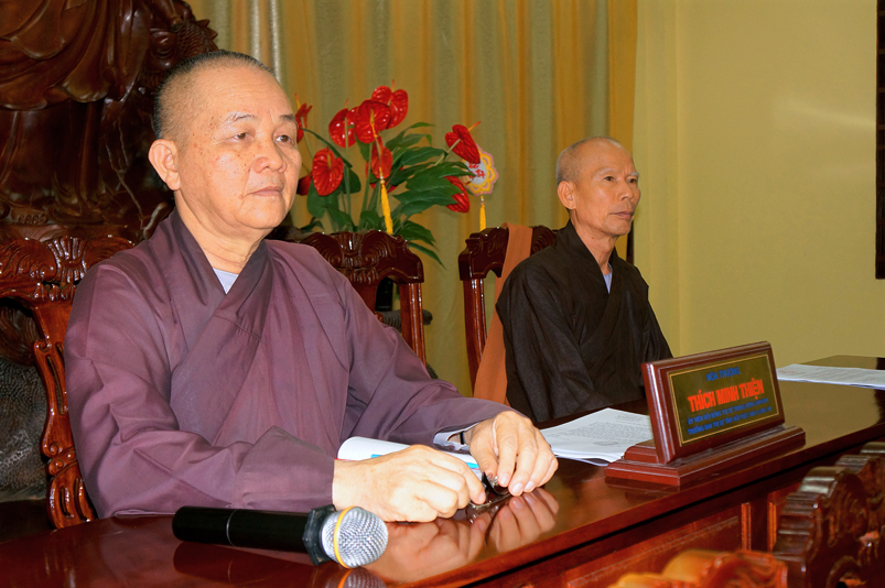 Kết thúc buổi họp, HT. Thích Minh Thiện- Ủy viên HĐTS, Phó Trưởng ban Hoằng pháp TƯ; Trưởng Ban Trị sự GHPGVN tỉnh Long An đã ca ngợi công đức của tất cá chư Tôn đức Phật giáo huyện, thị, thành phố, các phân ban. Hoà thượng khích lệ tinh thần làm việc, hy sinh, sự gắn kết từ trên xuống dưới. Ngài cũng nhấn mạnh, Phật sự luôn phải vất vả, “chịu thiệt”, thử thách nhưng hãy hiểu nếu không có Giáo hội lãnh đạo liệu mình có yên tâm tu được không khi xung quanh mình có rất nhiều yếu tố chướng ngại cho đường tu mà cần phải có một tổ chức đứng ra gánh vác. Và buổi họp được kết thúc và thành tựu trên tinh thần hòa hợp, thanh tịnh.