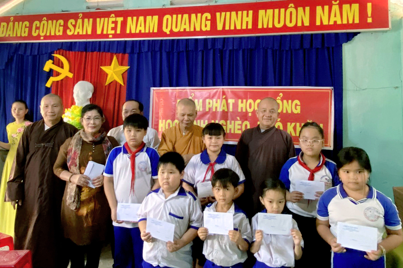 Nhân lễ Khánh Thành phái đoàn tổ chức trao tặng 40 suất học bổng cho 40 học sinh nghèo hiếu học trên địa bàn của 2 xã. Tổng giá trị các phần quà hơn 20 triệu đồng do HT. Thích Phước Toàn và phật tử tài trợ.