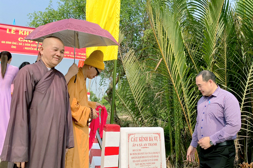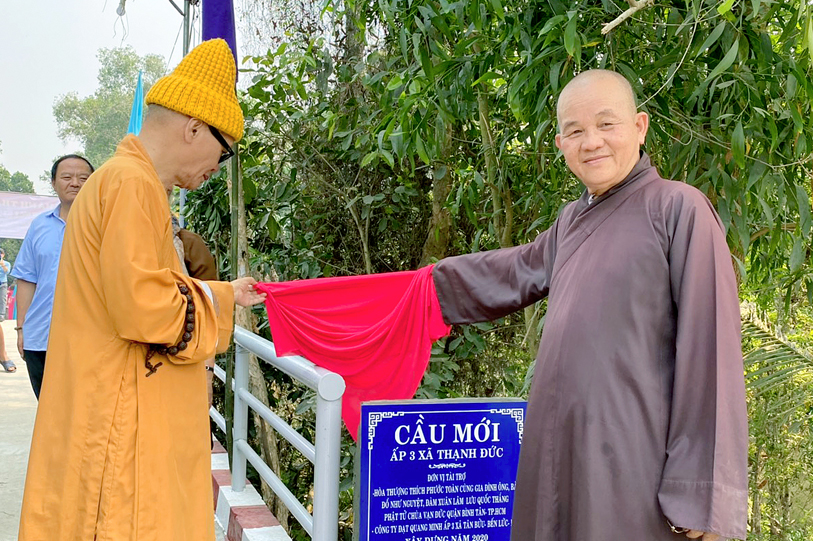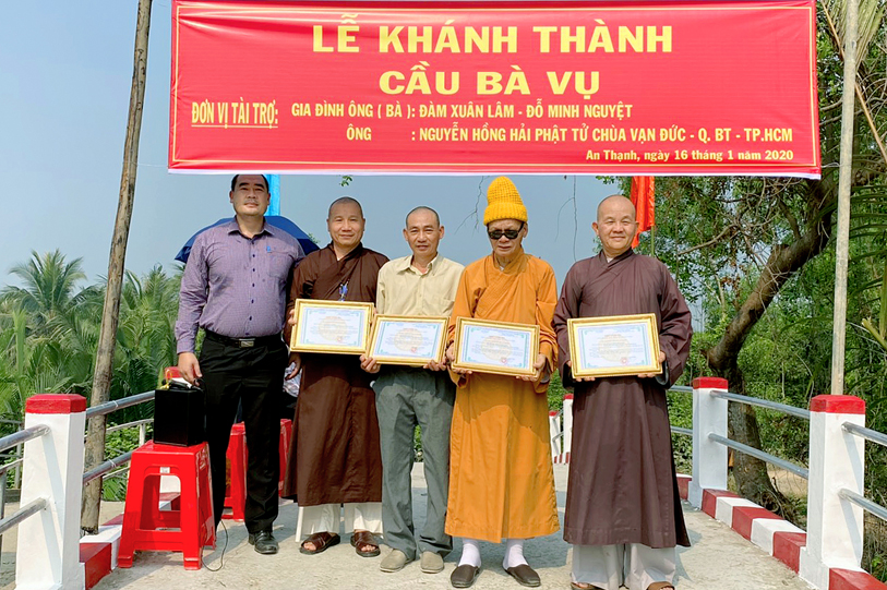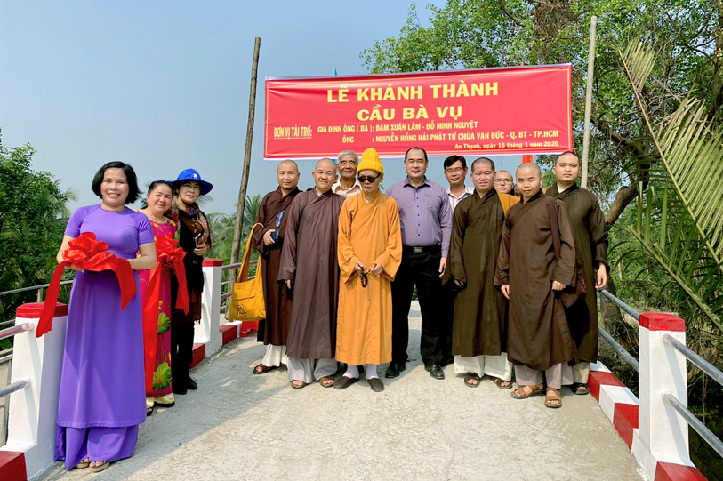 Ngày 06 tháng 01/ 2020( 22/ 12/ Kỷ hợi), Ban từ thiện xã hội GHPGVN tỉnh Long An, chùa Vạn Đức, quận Bình Tân, Tp. HCM phối hợp chính quyền địa phương xã Thạnh Đức và xã An Thạnh, huyện Bến Lức, tỉnh Long An tổ chức lễ khánh thành 02 cây cầu giao thông nông thông.