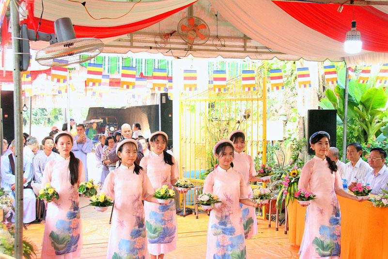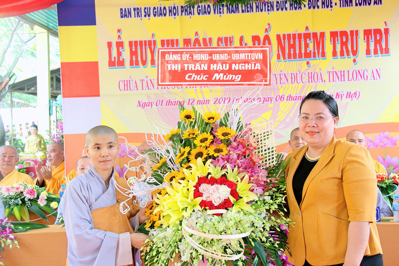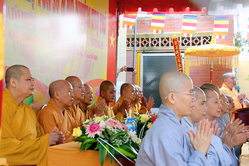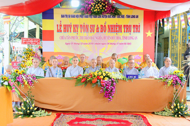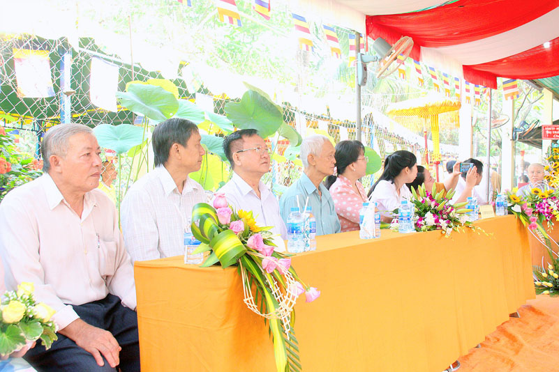 Chứng minh tham dự buổi Lễ có Thượng Tọa Thích Quảng Tâm- Ủy viên Hội đồng Trị sự Trung ương GHPGVN, Phó trưởng Ban Thường trực Ban Trị sự GHPGVN tỉnh Long An; Đại đức Thích Lệ Duyên – Chánh Thư ký kiêm Trưởng Ban Phật giáo Quốc tế GHPGVN tỉnh Long An; Đại đức Thích Lệ Ngôn – Trưởng ban Hoằng pháp GHPGVN tỉnh Long An; Hòa Thượng Thích Trí Khai – Chứng minh Ban Trị sự GHPGVN liên huyện Đức Hòa – Đức Huệ; Đại đức Thích Minh Trí- Ủy viên GHPGVN tỉnh Long An, Chánh Thư ký Ban Trị sự GHPGVN liên huyện Đức Hòa – Đức Huệ;Chư Tôn Đức Tăng Ni trụ trì các tự viện; Cựu Tăng Ni sinh khóa III Trường Trung cấp Phật học Long An và hơn 200 Phật tử tham dự.