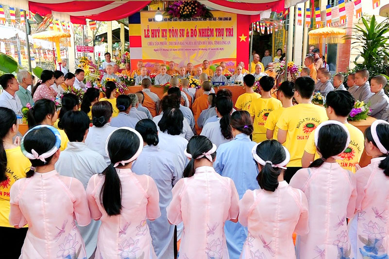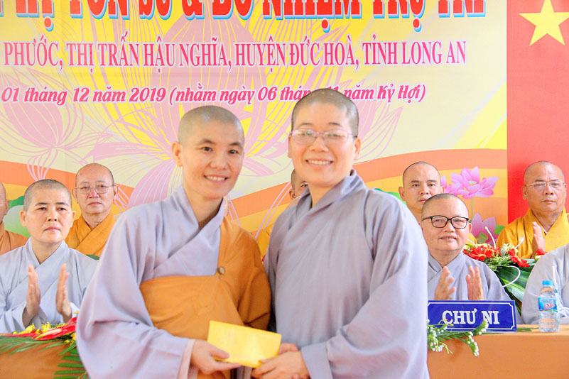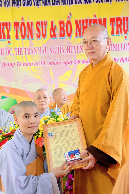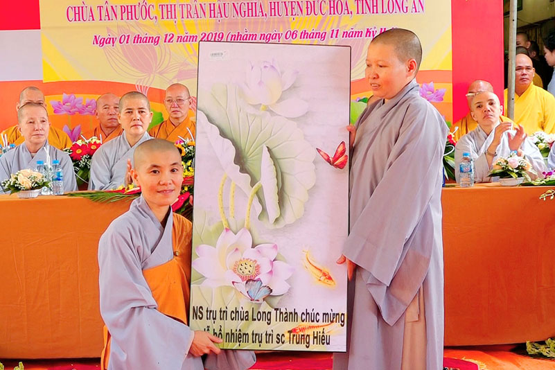 Tại buổi lễ, ĐĐ.Thích Lệ Duyên- Chánh Thư ký BTS GHPGVN tỉnh Long An công bố quyết định bổ nhiệm trụ trì của BTS GHPGVN tỉnh Long An cho SC.Thích nữ Trung Hiếu. Sau đó, TT. Thích Quảng Tâm- Phó Thường trực BTS GHPGVN tỉnh Long An trao quyến định đến Sư cô tân trụ trì.