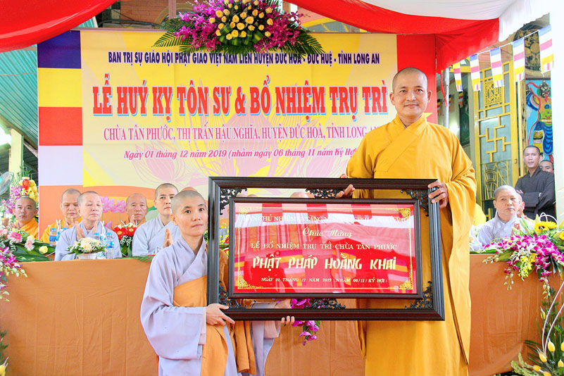 Hôm nay, ngày 01/12/2019 (nhằm ngày 06/11/Kỷ Hợi) tại Thị Trấn Hậu Nghĩa, huyện Đức Hòa, tỉnh Long An Ban Trị sự GHPGVN liên huyện Đức Hòa – Đức Huệ trang nghiêm tổ chức Lễ công bố quyết định Bổ nhiệm Trụ trì chùa Tân Phước, ô 5, khu B, Thị Trấn Hậu Nghĩa, huyện Đức hoà, tỉnh Long An cho sư cô Thích Nữ Trung Hiếu.