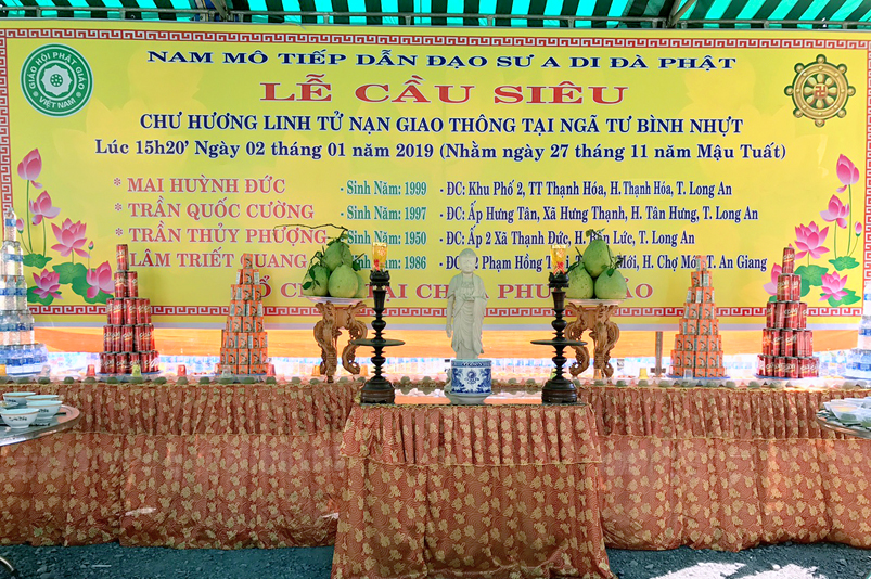 Long An: Huyện Bến Lức Ban trị sự GHPGVN huyện cầu siêu Chư hương linh tử nạn tại ngã tư Bình Nhựt