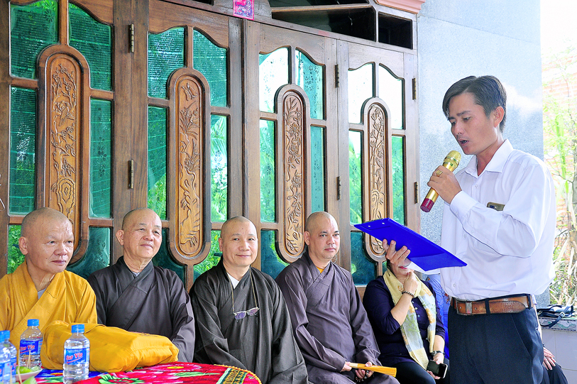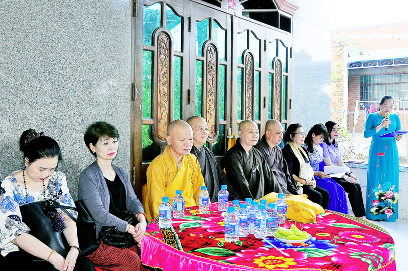 Chứng minh và tham dự buổi lễ có: HT. Thích Minh Thiện – Uỷ viên HĐTSTƯ, Phó Ban Hoằng pháp trung ương, Trưởng Ban Trị sự GHPGVN tỉnh Long An; HT. Thích Phước Toàn- Uỷ viên Ban Văn Hoá trung ương, Viện chủ chùa Vạn Đức (TP Hồ Chí Minh); TT. Thích Đức Hoàng- Phó Ban Trị sự GHPGVN tỉnh Long An; Đại đức Thích An Trung- Trưởng Ban Trị sự GHPGVN huyện Bến Lức.