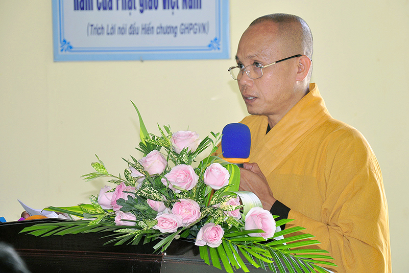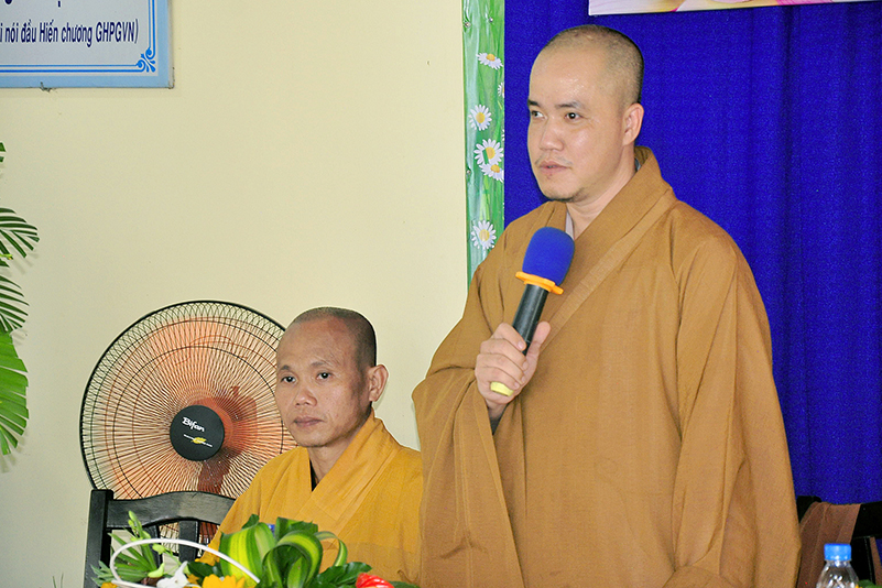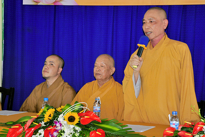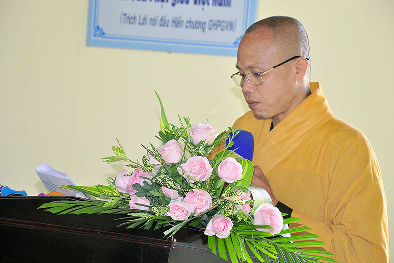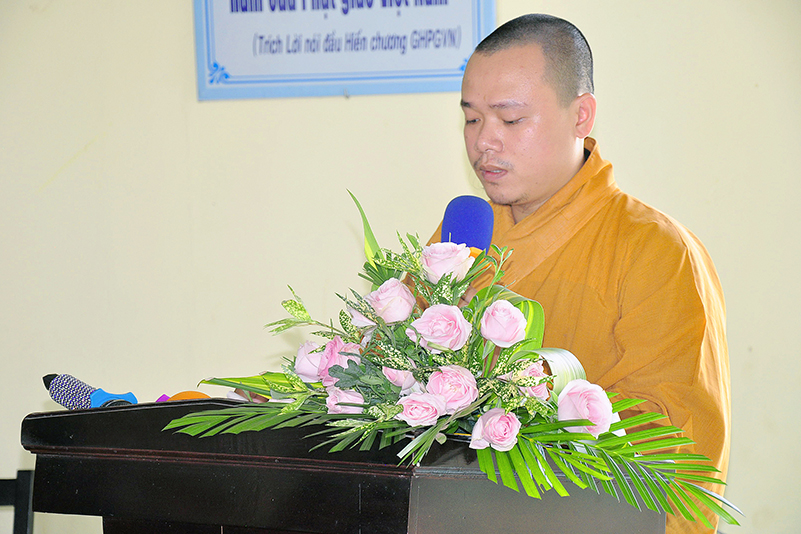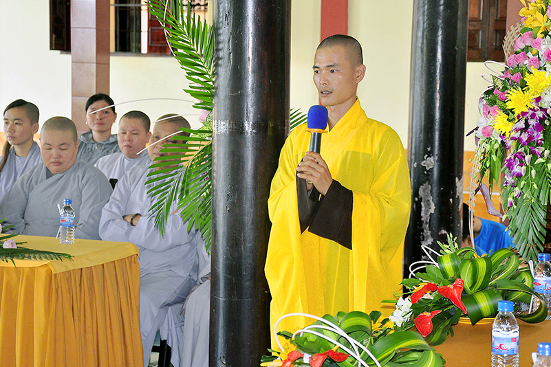 Tiếp theo, Đại Đức Thích Huệ Quang tuyên đọc báo cáo kế hoạch khóa tu mùa hè, và đọc bảng nội quy khóa tu kính trình lên Chư Tôn Thiền Đức liễu tri.