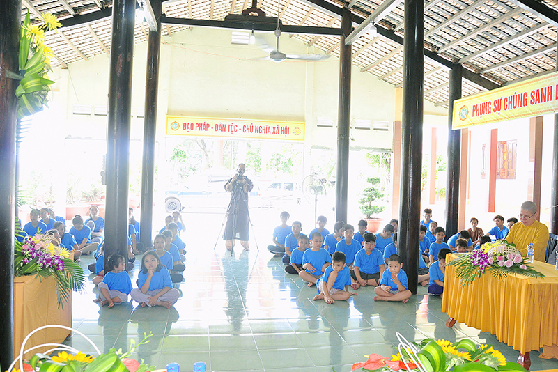 Trước khi kết thúc buổi lễ Khai mạc, Hòa thượng Thích Thiện Huệ đã ban đạo từ tán thán việc tổ chức khóa tu học bổ ích cho các em nhỏ, để cho các em có cơ hội tập trung về chùa sinh hoạt trong tinh thần lành mạnh. Hòa thượng cũng nhắn nhủ thêm rằng, việc hướng dẫn các em vui chơi và tu học, không nên quá ràng buột, nhưng phải đúng phương hướng và phương châm để các em có hướng đi tốt đẹp từ trong nhà trường cho đến cuộc sống trong gia đình và xã hội. Các bậc cha mẹ tin tưởng gởi con cháu cho Qúy Thầy cô hướng dẫn, khi tham gia khóa tu xong về nhà, các em có phải ngoan hơn, phải có những thay đổi tích cực sau những ngày tu học. Hòa thượng khuyến tấn các em khóa sinh nỗ lực, tinh tấn tu học, gặt hái được nhiều kết quả tốt để trở thành những người con ngoan, trò giỏi của đất nước và dân tộc.
