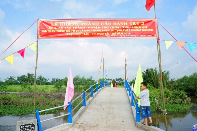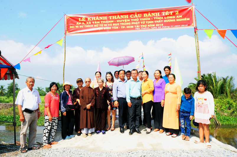 Tham dự lễ khánh thành cầu có Đại đức Thích Huệ Thông- Trưởng ban Thông tin Truyền thông GHPGVN tỉnh Long An; Đai đức Thích An Lộc, Đại đức Thích Đạo Ngộ; Ni sư Thích Nữ Từ Bi- Trụ trì tịnh Thất Hương Nghiên, Quận Bình Tân, Tp. HCM.
