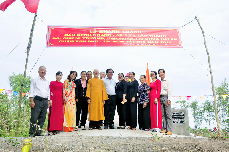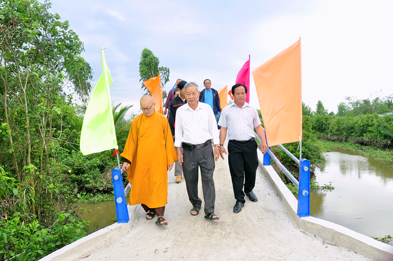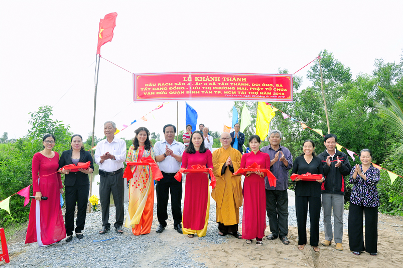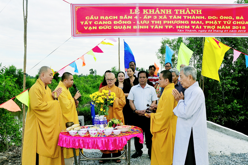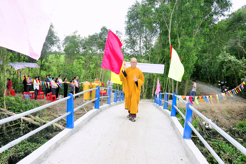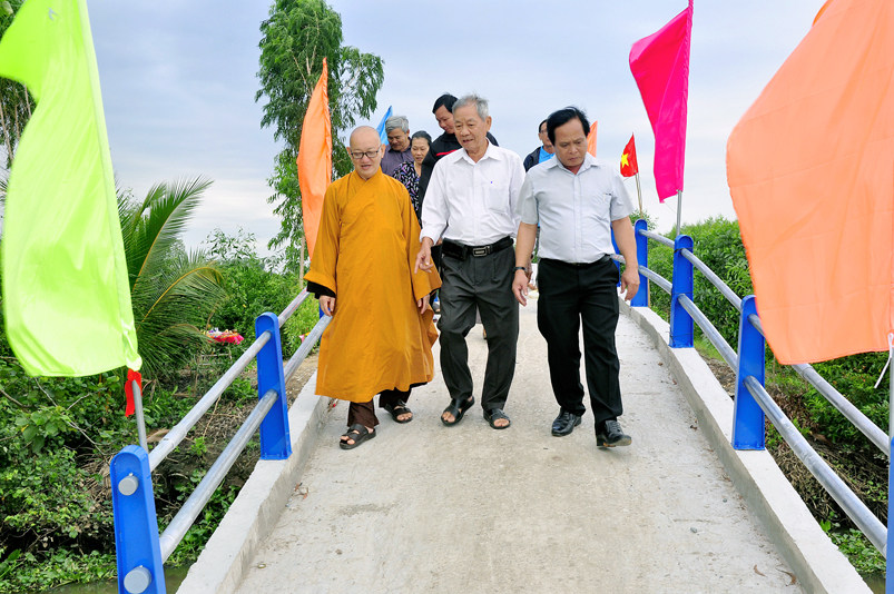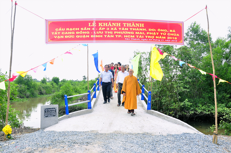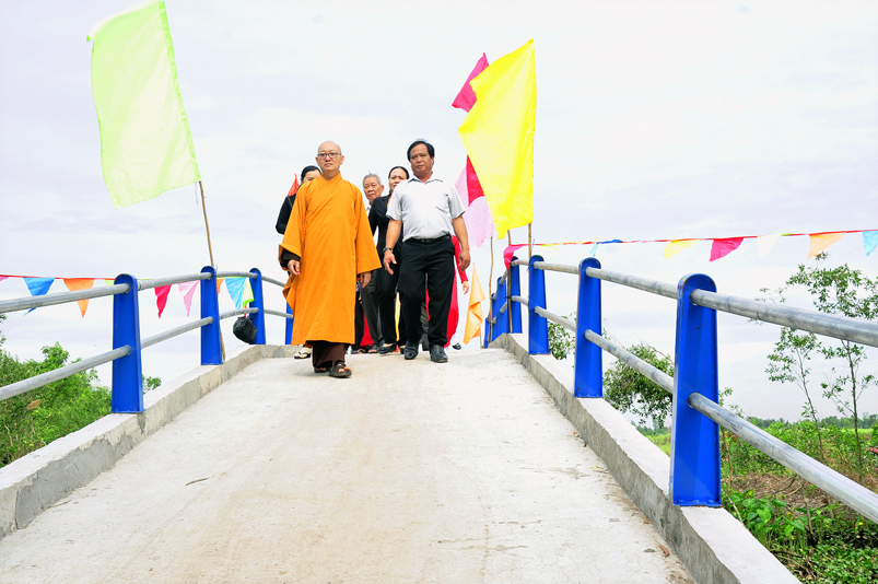 Tham dự lễ khánh thành cầu có Thượng Tọa Thích Quảng Tâm- Phó thường trực Ban trị sự GHPGVN tỉnh Long An – trưởng Ban từ thiện xã hội PGVN tỉnh Long An