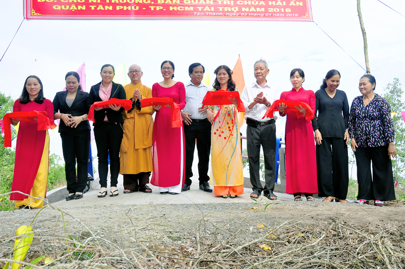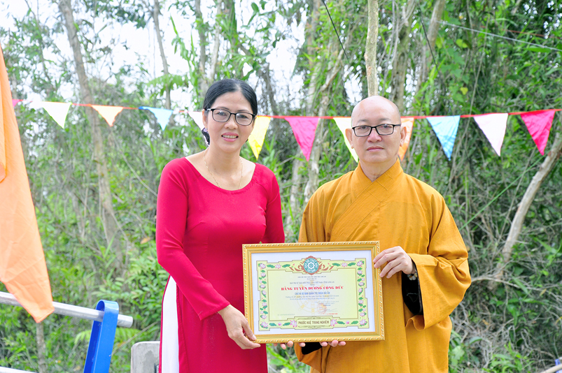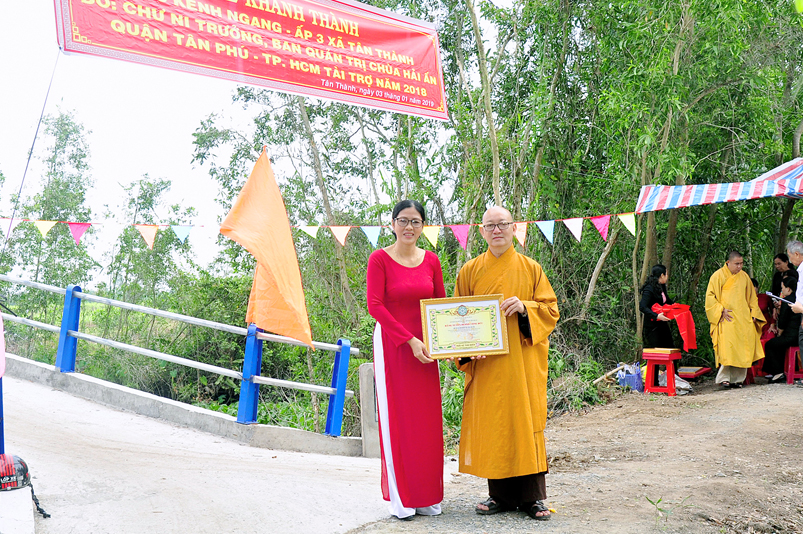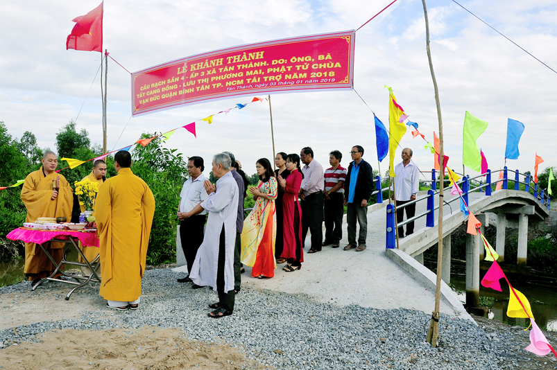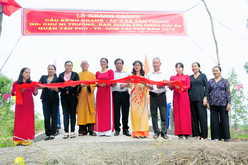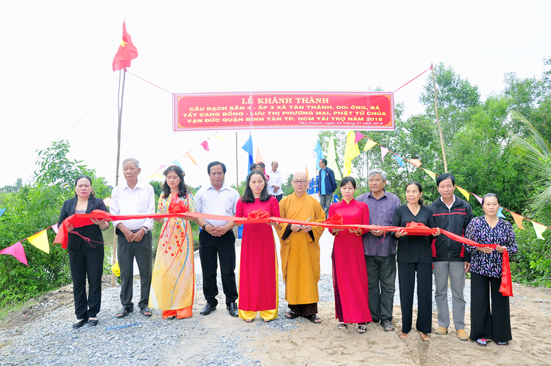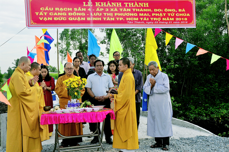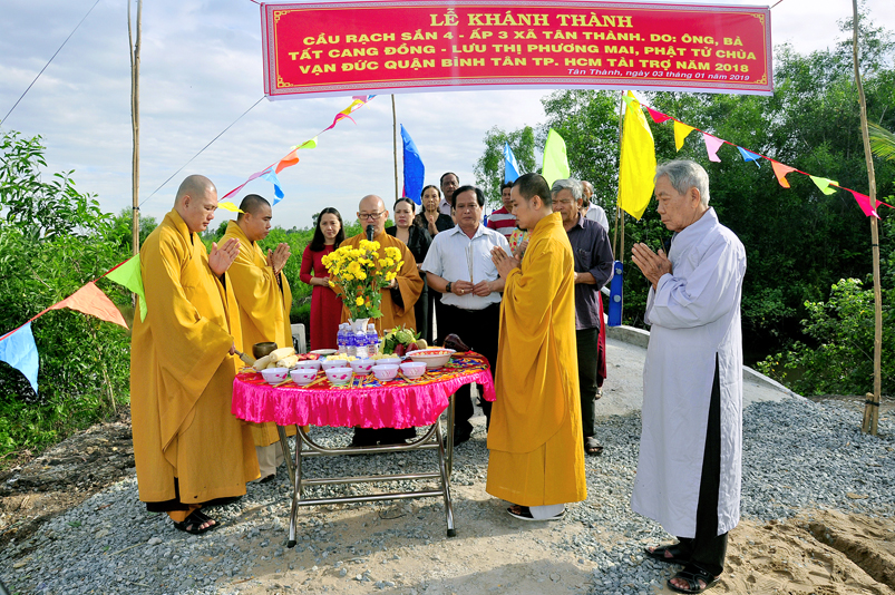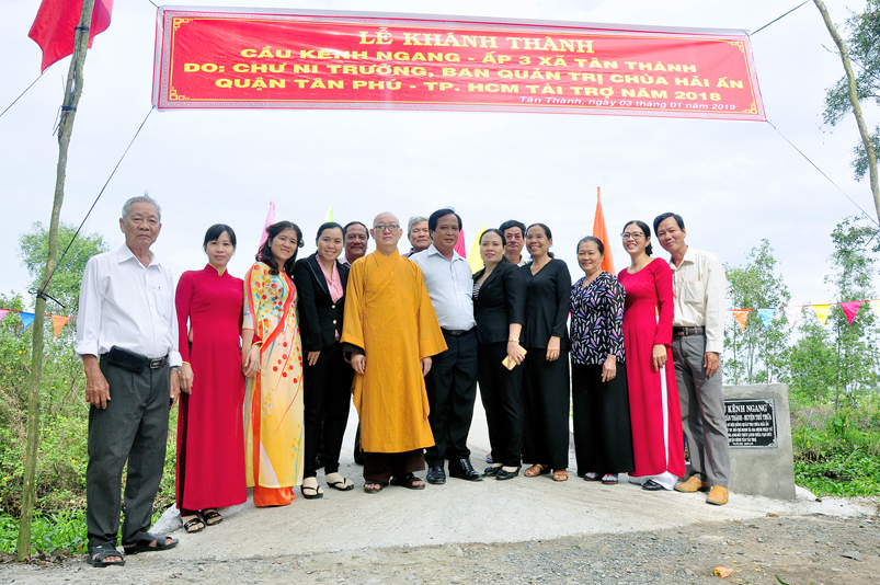 Tham dự lễ khánh thành cầu có Thượng Tọa Thích Quảng Tâm- Phó thường trực Ban trị sự GHPGVN tỉnh Long An – trưởng Ban từ thiện xã hội PGVN tỉnh Long An