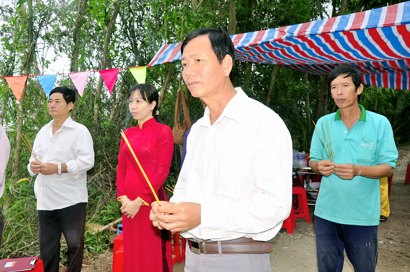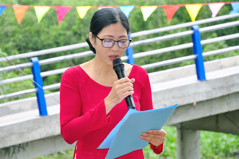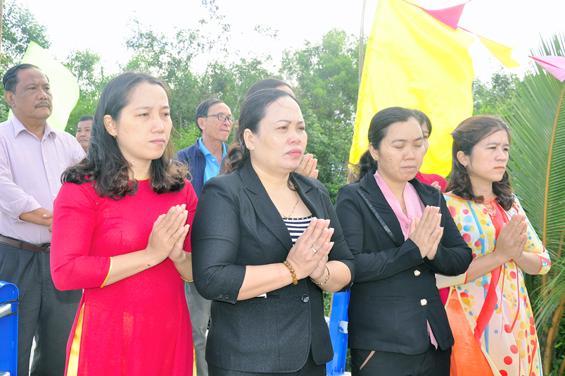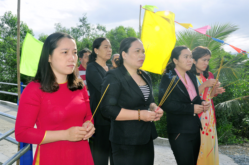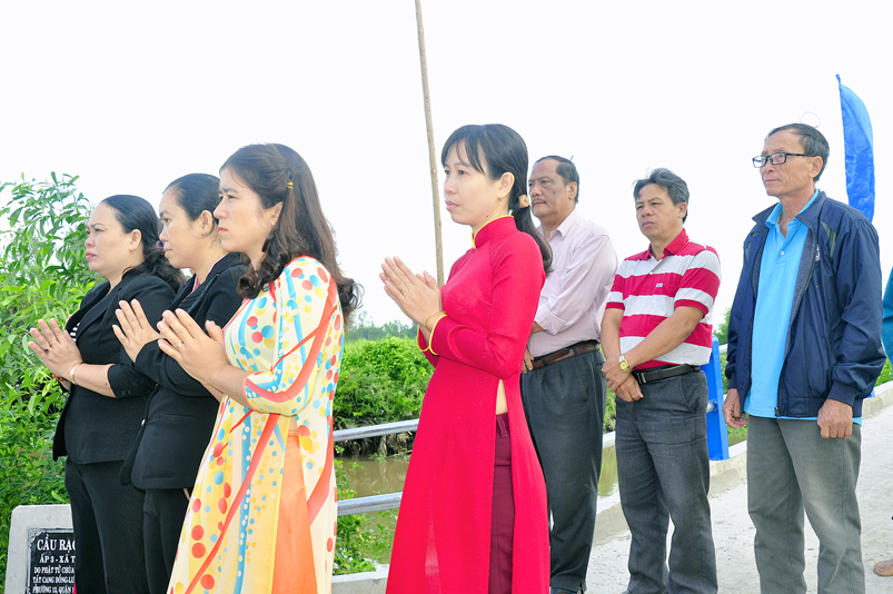 Buổi lễ diễn ra trang nghiêm với phần nghi thức tâm linh Phật giáo cầu nguyện cho anh linh anh hùng chiến sĩ, đồng bào tử nạn trong kháng chiến, nghi thức hành chánh và cắt băng khánh thành thông cầu.